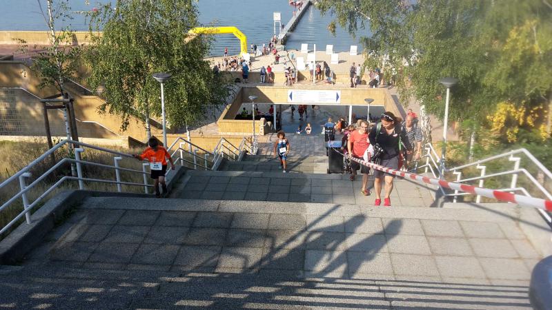 Am Wannsee in Berlin gab es eine Neuauflage des BerlinMan, die auch Familie Lampe zum Mitmachen animierte. Der männliche Teil der Familie war schon lange angemeldet, doch Annett ließ sich mit ihrer Teilnahmeentscheidung Zeit. Leider zu viel, wie sich rausstellte, denn die Startplätze waren am Wettkampftag alle vergeben. Enttäuscht blieb ihr nur übrig, ihren Männern die Daumen zu drücken. Aber es kam für sie noch schlimmer. Mit Entsetzten stellte sie fest, dass der Neoprenanzug von Matthias zu Hause vergessen wurde. Die Hoffnung auf ein Verbot, dass ab 23 Grad Wassertemperatur ausgesprochen wird, erfüllte sich nicht, denn die Säule des Termometers blieb bei 22,3 Grad stehen. Bei einem Mitteltriathlon ist der Neo von Vorteil, zumal in Berlin die Schwimmstrecke 2,2 km beträgt anstatt sonst 1,9 km über diese Distanz. Und das bei Matthias Vorhaben, die 5 Stunden Marke knacken zu wollen. .... Ein harter Kanten und er weit und breit allein ohne Neo.....Am Ende hat alles dennoch gut geklappt. Er kam glücklich ins Ziel, super Radzeit und mit dem Lauf war er auch zufrieden. Keine Krämpfe, keine Schmerzen und das bei 32 Grad. "Es geht also auch ohne", freute er sich über seine Leistung. Seine Zeiten von 49:12 Minuten Schwimmen (inklusive Treppenaufstieg 88 Stufen), 2:41:28 Stunden für 90 km Radfahren und 1:38:39 Stunden für 20 km Lauf können sich sehen lassen, obwohl er mit einer Endzeit von 5:09:19 Std. sein persönliches Ziel nicht ganz erreicht hat. Als 27. in AK TM40 von 69 Teilnehmern und 194. von 488 Männern erschien er auf den Ergebnislisten.