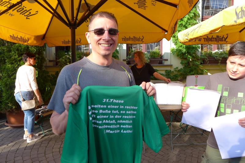 Im Hinblick auf das Reformationsjahr 2017 entschieden sich die Läufer der Gaensefurther Sportbewegung für eine Teilnahme am Luther-Lauf in Bernburg und ließen dafür schweren Herzens den Konradsburglauf in Ermsleben sausen. Unter der Federführung des KreisSportBundes Salzland e.V. (KSB) sollten die Starter aber durchaus Gefallen an diesem einmaligen Luther-Lauf haben. Als zweiter Wertungslauf in der Solvay-Cup-Serie ausgeschrieben, umrahmte bereits am Vorabend eine leckere Nudelparty die Ausgabe der Startunterlagen. Die ersten 95 Angemeldeten erhielten dann auch ihr ganz spezielles Unikat, ein Lauf-Shirt auf dem die jeweilige Luther-These aufgedruckt war. Aktueller hätte der KSB für seinen Lauf nicht werben können, wo doch geschichtlich mit den 95 Thesen gegen die Ablasspraxis am 31. Oktober 1517 die Reformation ihren Anfang nahm. 500 Jahre später nun, wo sich die neuen Erkenntnisse bis in die Gegenwart ziehen, beschreibt der Luther-Lauf einen Teil des langen Weges. Hatte sich der KSB nur auf die Halbmarathondistanz festgelegt, war die Teilnahme doch eher routinierten Läufern vorbehalten. Lediglich Walker konnten ebenfalls über diese Distanz starten.