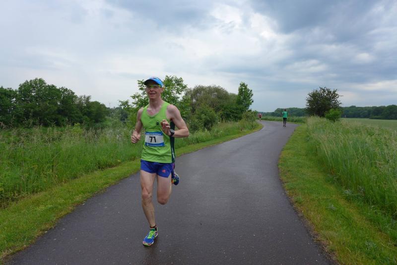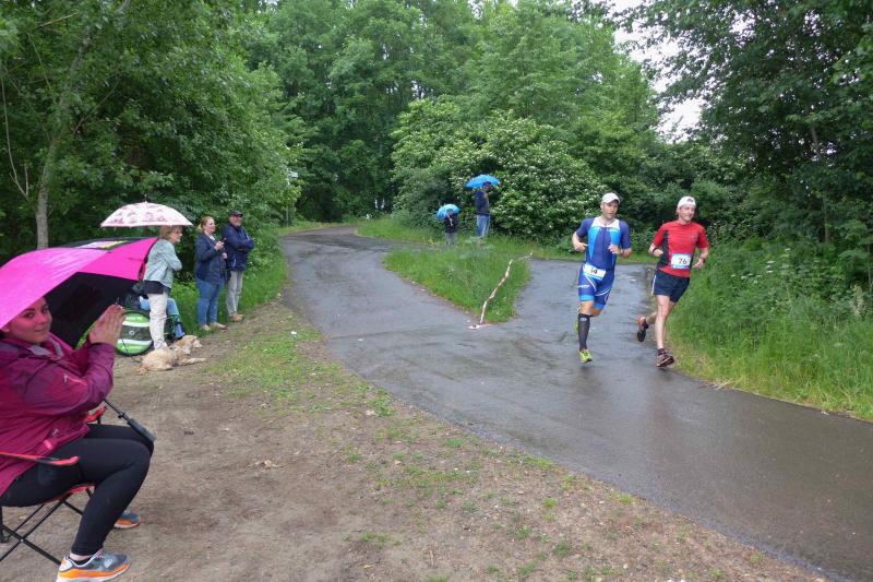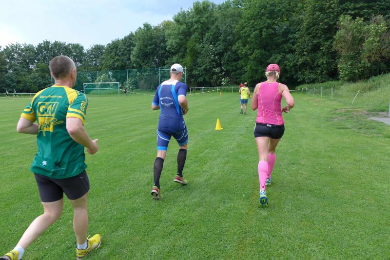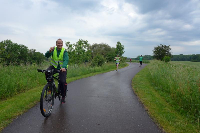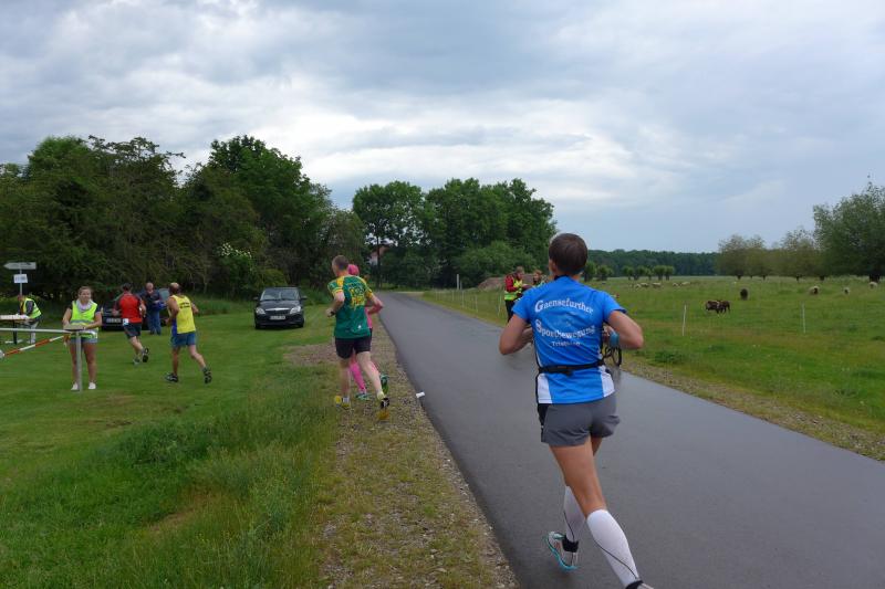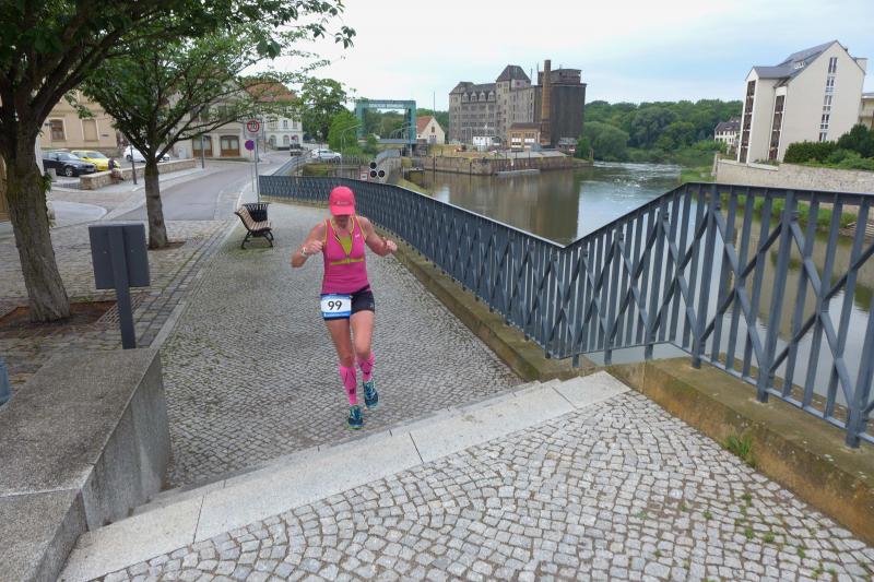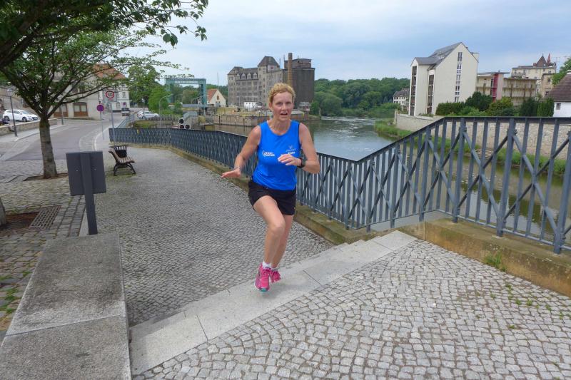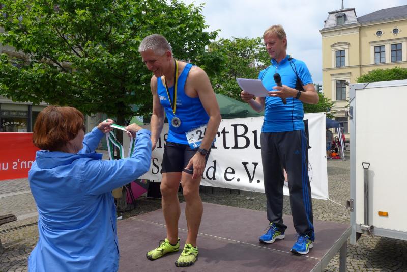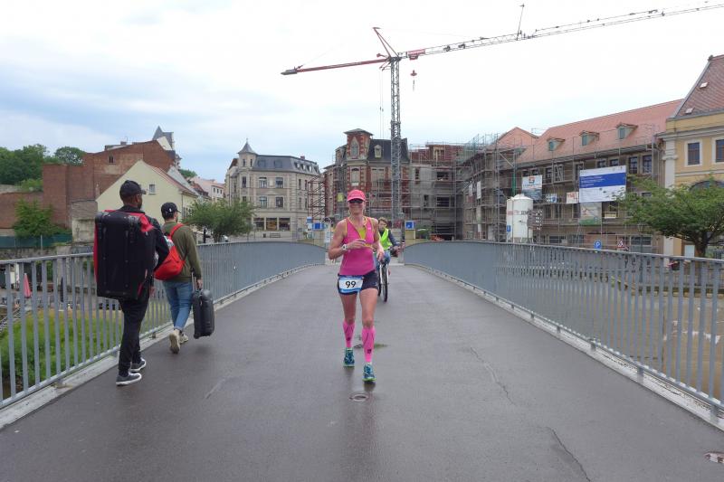 Heidi Rabenstein von der Gaensefurther Sportbewegung wollte diese Herausforderung zusammen mit ihrem Mann Ronald angehen. Mit allen guten Wünschen der Vereinskollegen erfolgte der Startschuss zusammen mit 130 Teilnehmern auf dem Alten Markt in Bernburg. Die Regenwolken hatten sich bereits vor dem Start ordentlich entleert und sollten die Aktiven noch fast über die gesamte Streckenlänge begleiten. Es ging am Bernburger Tiergarten vorbei, immer der Saale durch das dichte Grün folgend, bis in den Auwald nach Plötzkau. Auf dem Sportplatz eröffneten die Streckenposten den Läufern, dass doch bitte zwei Runden zu laufen seien. Was für ein Spaß durch das nasse Gras, spätestens jetzt waren auch die Strümpfe nass. Das erhabene Schloss grüßte vom Schlossberg und wachte über die Einhaltung der Rundenzahlen: „Hey Silvio, zurück! Zwei Runden musst du hier!“ ermahnte Jens-Uwe Börner seinen Kontrahenten vom BSV Eickendorf und verwies ihn in Runde zwei durch das nasse Gras. Börner verlor auch die Spitzengruppe der Frauen nie aus den Augen und erlebte den Zweikampf zwischen Ina Schöler (ZLG Atzendorf) und Stefanie Nowak von der Gaensefurther Sportbewegung direkt mit. Zurück in Gröna, musste Nowak nach der Saaleüberquerung dann abreißen lassen. Am anderen Flussufer ging es zurück nach Bernburg. Schöler meisterte ihren ersten Lauf in diesem Jahr mit Bravour und meldete sich mit dem Gesamtsieg bei den Frauen in beeindruckender Wettkampfform zurück. Bei den Männern holte sich Toni Keller in nur 01:18:05 den Pott über den Gesamtsieg. Im vereinsinternen Duell der Triathleten war Maik Löwe am laufstärksten, gefolgt von Stefan Berger und Steffen Schöler, die mit ihren Zeiten mehr als fit sind für die laufende Triathlonsaison. Sein wachsames Auge und die Pace mit den schnellsten Frauen des Laufes, verhalfen am Ende auch einem überglücklichen Börner auf das Podest. Kathleen Mahler finishte nach dem Rennsteig zufrieden ihren zweiten Halbmarathon und ihr Mann Nico reformierte quasi seine Bestzeit über diese Distanz um ganze zehn Minuten. Sabine Börner freute nach dem absolvierten Ultra, dass die Beine auch noch einen schnellen Lauf hinbekamen.