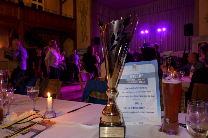 Im Gepäck hatte Kley jedoch nicht nur die sympathische Anekdote über die unfreiwillige Erkundung des Salzlandkreises, sondern auch reichlich Lob. Zuallererst für die LVSA-Fachkommision Lauf, die neben Broska auch Bernd Ebert, Sven Projahn, Martin Springer und Helmut Zausch einschließt. „Gemeinsam haben wir nach einem neuen Konzept gesucht, um attraktivere Läufe und eine bessere Wertung für den Cup zu finden.“ Der Blick in den Saal bescheinigte dem Unterfangen Gelingen: „Dass es funktioniert hat, wieder derart viele Teilnehmer anzuziehen, ist ein Ansporn, künftig noch mehr Läufer zu gewinnen.“ Um die Gewinner – namentlich alle 121 Qualifizierten in der diesjährigen Wertung – ging es schließlich am Sonnabend in erster Linie. Kley würdigte: „Der Novo Nordisk-Landescup ist das Highlight unseres Verbandes. Es ist eine Wertung, die etwas bedeutet. Nämlich dass man sich engagiert und gekämpft und seine Leistung über einen längeren Zeitraum nachgewiesen hat.“ Dies taten in diesem Jahr vor allem die Bode-Runners der Gaensefurther Sportbewegung. Zwar kamen von 21 Athleten, die an einer der zehn Cup-Stationen teilnahmen, nicht alle auf die erforderlichen vier Wertungsläufe, doch jene 15, die es taten, bescherten dem Staßfurter Verein den Gesamtsieg in der Mannschaftswertung. Insgesamt 1901 Landescup-Punkte nach Einzelstartern „sind schon der Wahnsinn“, befand Bernd Ebert, der in Barby durch den Ehrungsteil führte.