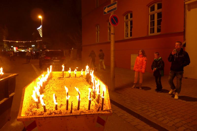 ...Die Macher von Staßfurt in Flammen, rührige Mitglieder des Gewerbevereins Staßfurt, erfüllten auch in der 13. Auflage wieder ihren Anspruch, ein Fest für die ganze Familie auf die Beine zu stellen: Vom Fackelumzug und Kinderkarussell für die Jüngsten, über Feuershow und Feuerwerk bis zur Partymusik von drei verschiedenen Bands, DJs auf den Bühnen, der Straße und in der Lounge am See sowie einen Stargast dazu – quasi für alle Generationen. „Das alles muss ja irgendwie auch bezahlt werden“, ist beispielsweise Thomas Richter der Meinung und damit wohl realistisch. Das Straßenfest war einmal mehr auch Schmelztiegel für die verschiedensten Anbieter kulinarischer Genüsse, die von Flammkuchen bis Mutzbraten reichten. Selbstverständlich flossen zudem Bier und vor allem Glühwein zwischen Fackeln, Feuerkörben und -schalen in Strömen…