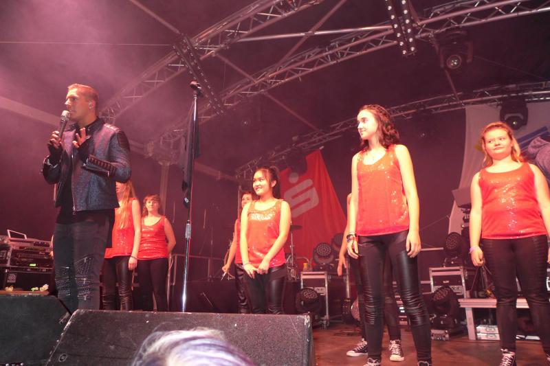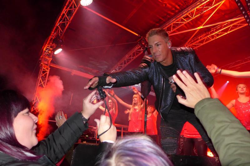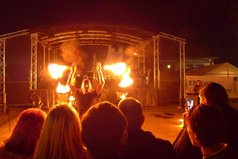 Ein farbenprächtiges Feuerwerk, untermalt mit passender Musik aus Film und Fernsehen, vom Guten- Abend-Gruß des Sandmännchens bis zu Hits von Metallica, brannten die Pyrotechniker aus Eibenstock wieder ab – und ernteten begeisterten Applaus von den Zuschauern am Stadtsee. Die Feuershow Robaria aus Thüringen faszinierte sowohl mit Elementen des Feuerspuckens, als auch mit Feuerkanonen. Zudem stimmte sie mit einem kleinen Feuerwerk auf den Höhepunkt des Abends am Stadtsee ein. Und die Schlagerfans ließen sich gern von Norman Langen in Partystimmung bringen. Die Dance Factory Egeln freute sich einmal mehr, zusammen mit einem Stargast auf der Bühne tanzen zu dürfen. Fotos: Jens-Uwe Börner