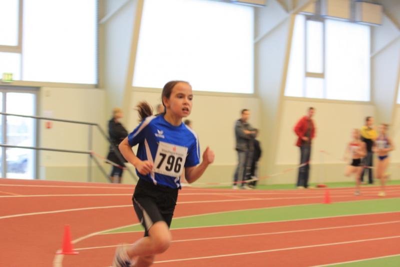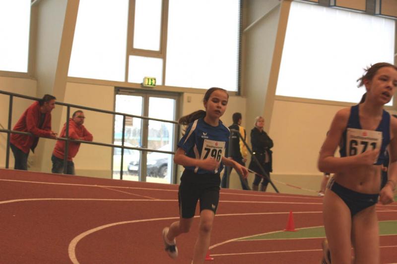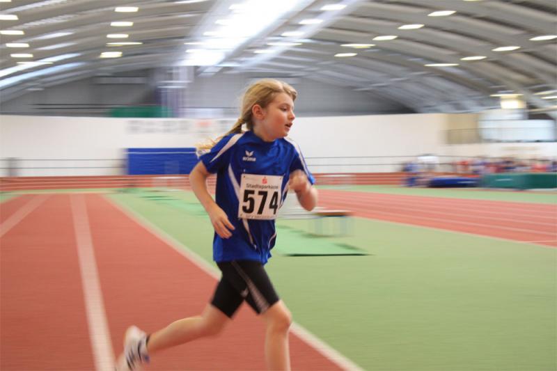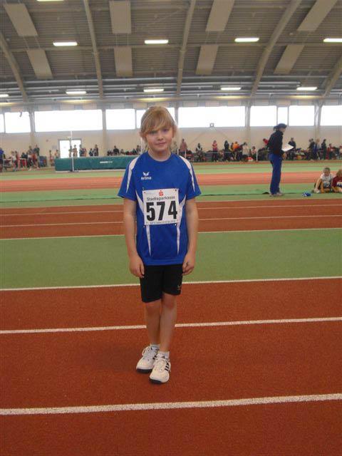 Sonnabend ging nur Nele in der Altersklasse 9 ( Ak ) im Dreikampf ( 50 Meter, 400 Meter, Weitsprung ) an den Start. " Sie war gut, außer im Weitsprung, da hat sie ein bisschen geschwächelt ", sagte Rösler. Die 50 Meter legte sie in 9, 17 Sekunden zurück. In 98, 09 Sekunden überquerte Nele die Ziellinie über die 400 Meter. Im Weitsprung leistete sie sich gleich zu Beginn zwei Fehlversuche. " Daher hat sie im dritten nur einen Sicherheitssprung gemacht. " Mit 717 Punkten erreichte sie in einem sehr großen Teilnehmerfeld den 38. Platz.