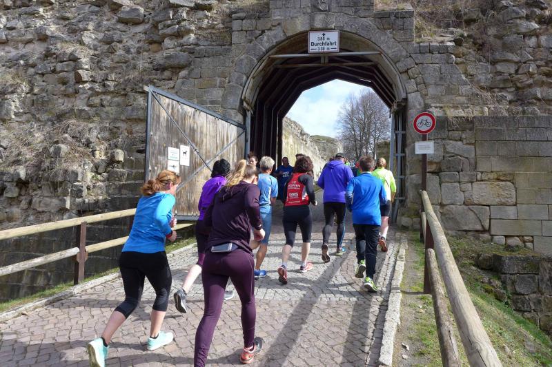 Unter ihnen auch 20 Teilnehmer der Gaensefurther Sportbewegung, die den anspruchsvollen Cross rund um die Burg Regenstein immer wieder gerne in ihrem Laufkalender integrieren. Einige Newcomer lauschten bereits vor dem Start den ausführlichen Berichten über Steigungen und Wurzelwege, so dass mit verhaltenem Respekt und ganz tiefen Atemzügen der Anlauf zur Burg angegangen wurde.
