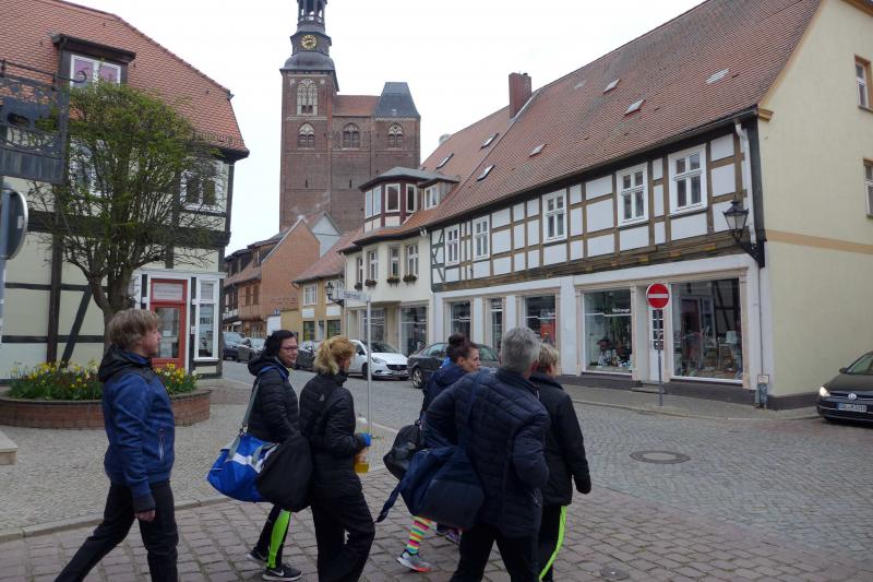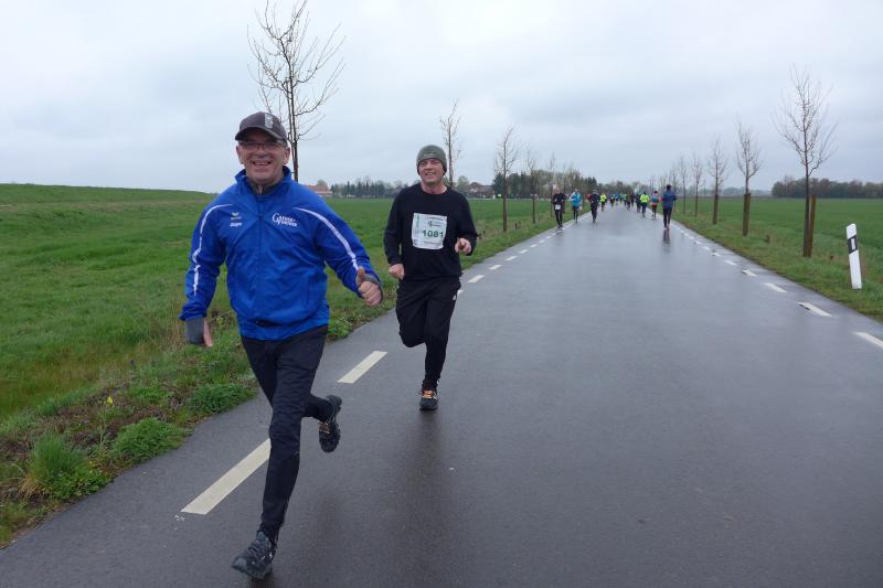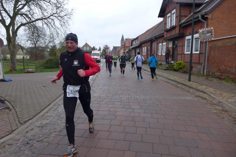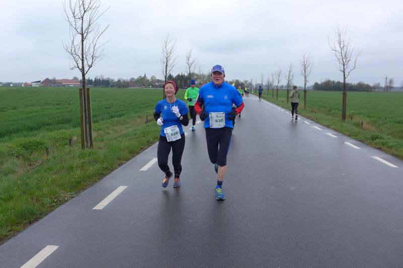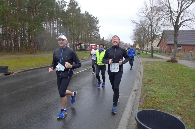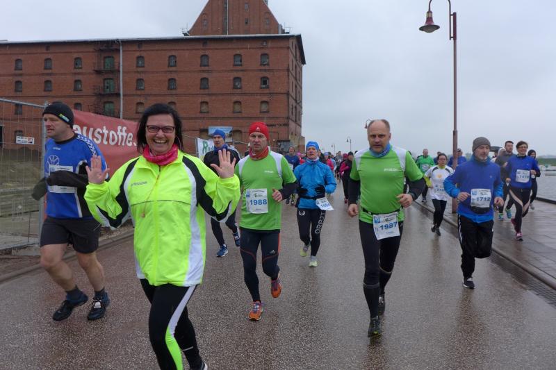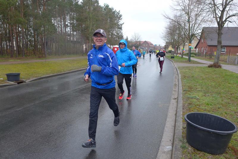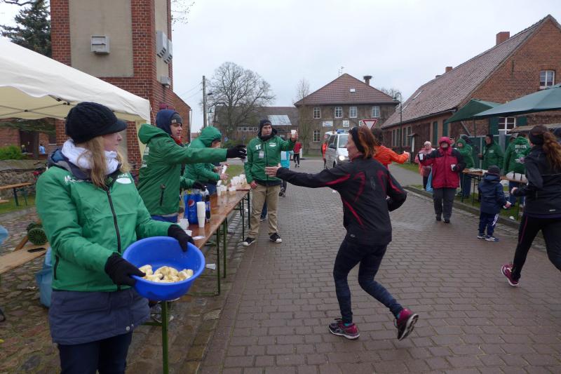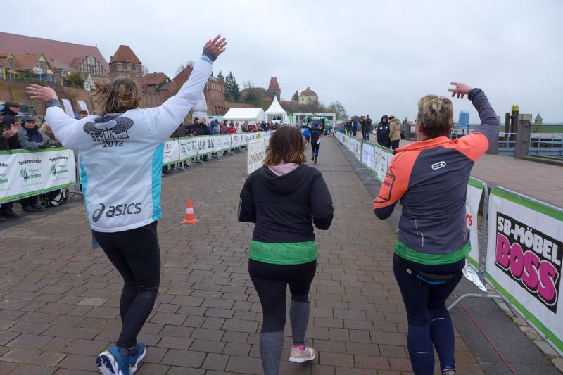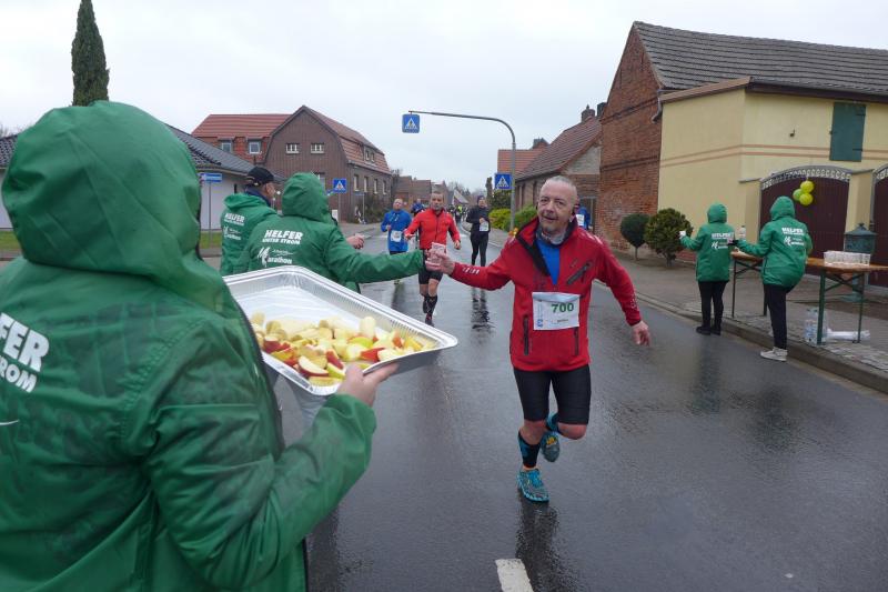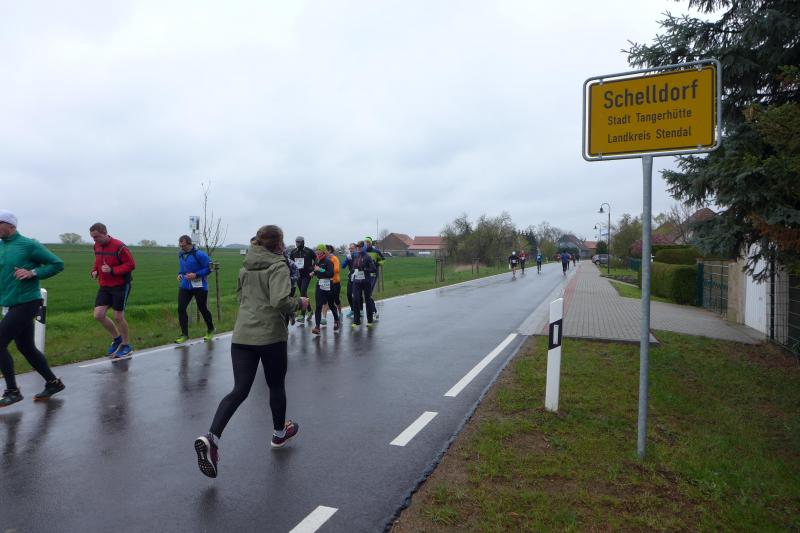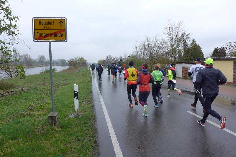 Die Regeneration war noch nicht abgeschlossen und der Muskelkater noch garnicht da, als die Läufer am nächsten Morgen bereits beim Tangermünder Elbdeich Marathon an der Startlinie standen. Statt der Sechs waren nun ganze 15 Gaensefurther vertreten. Das ungemütliche Wetter setzte noch einen drauf, denn es regnete an diesem Sonntag besonders schön. Läufern macht das in der Regel nichts aus. Doch nun standen 1.800 Läufer im Pulk frierend am Start, da halfen warme Gedanken auch nicht mehr. Doch dann ging es los – auf zehn Kilometer am Deich entlang oder auf eine Halbmarathon-Runde über Bölsdorf , Buch und Schelldorf bis zurück in die Hansestadt Tangermünde. Über die Marathondistanz hatten die Bode-Runners diesmal keine Läufer am Start. Der Regen war im Ziel fast gänzlich vergessen und auch dem böigen Wind hatte man die kalte Schulter gezeigt. Fast alle Finisher über die 21,1 Kilometer landeten eine Zielzeit um die zwei Stunden. Auch Renate Liedtke finishte in Tangermünde ihren Halbmarathon überglücklich nach 02:20 Stunden. „Berlin BIG 25 kann kommen, da habe ich jetzt keine Angst mehr!“, resümierte die rüstige Sportlerin.