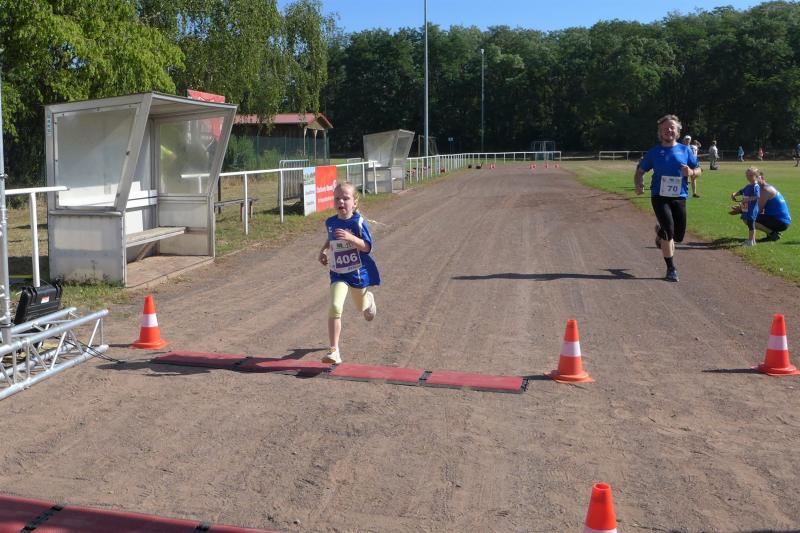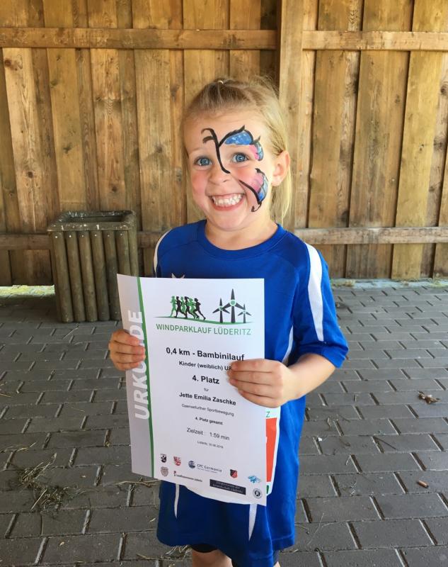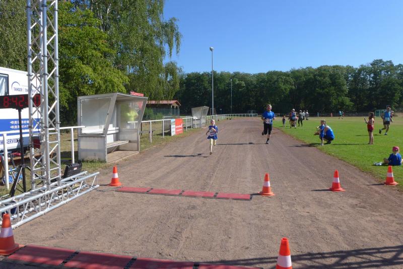Der neu errichtete Windpark Hüselitz bildete die Kulisse zur dritten Auflage des Laufevents der Lüderitzer Vereine mit Unterstützung des SC Demker. Trotz der Temperaturen über 30 Grad, starteten 215 Läufer über die fünf angebotenen Streckenlängen. Der Moderator fand die treffenden Worte vor den Starts: „Seien sie bei dieser Hitze vorsichtig und trinken sie sehr viel. Es kommt weniger auf die Zeiten an, kommen sie gesund ins Ziel!“ Wie Recht er hatte, spendeten lediglich die Bäume am Sportplatz etwas Schatten, auf den Feldwegen brannte die Sonne erbarmungslos. Der Fanfarenzug Lüderitz eröffnete die Veranstaltung, bevor die Jüngsten auf eine Sportplatzrunde geschickt wurden. Jette Emilia Zaschke klemmte sich mit ihren fünf Jahren an Papas Sohlen und beendete die 400 Meter mit einem vierten Platz bei den bis achtjährigen Läufern. Über die 1,5 Kilometer ihrer Schwester Rieke Lucie Zaschke hatten die Beine des in der Altersklasse M45 startenden Papas dann etwas Mühe zu folgen. Mit 46 Sekunden Vorsprung auf Platz zwei, siegte Rieke souverän in der jüngsten Altersklasse. Wenn sie so weiter trainiert, wird sie ihr Ziel, einmal fünf Kilometer zu laufen, sicher bald umsetzen. Laut Empfehlung der Deutschen Leichtathletikordnung ist diese Streckenlänge aber erst ab Altersklasse U12 zu werten. Rieke wird also noch eine ganze Weile warten müssen.