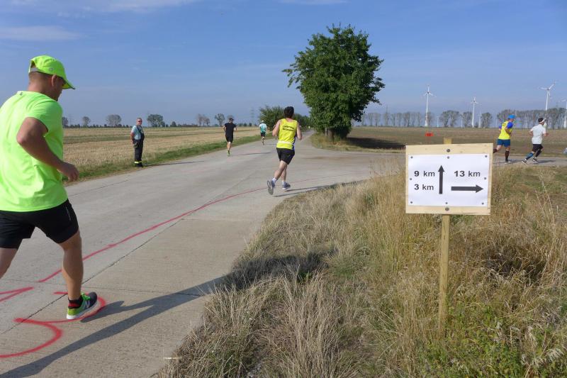 Bis auf wenige Ausnahmen, standen am nächsten Tag wieder alle Bode-Runners der Gaensefurther Sportbewegung beim 21. Eickendorfer Feldmarklauf am Start. Hatte sich inzwischen etwas Wind dazugesellt, hielten sich die Temperaturen beharrlich im oberen Bereich. So zollte der Wettkampf vom Vortag seinen Tribut und ließ die Kilometer in der Eickendorfer Feldmark besonders lang erscheinen.