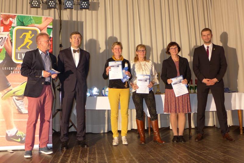 Ausgezeichnet wurden in den einzelnen Altersklassen jedoch alle, die mit vier oder mehr Teilnahmen den Sprung in die Cup-Wertung geschafft haben. Aus den Händen von Andreas Broska, Laufwart und Vizepräsident Breitensport im Leichtathletik-Verband Sachsen (LVSA), der wie gewohnt gemeinsam mit Bernd Ebert durch den Abend führte, sowie LVSA-Präsident Gerry Kley und Helmut Zausch, Mitglied der Fachkomission Lauf im LVSA, gab es die begehrten Medaillen und Urkunden, beziehungsweise den Pokal für die Erstplatzierten. „Dazu haben wir uns in diesem Jahr entschieden, statt der gewohnten Teilnehmer- T-Shirts einen Landescup- Schlauchschal an die Qualifizierten zu vergeben. Das kam gut bei den Teilnehmern an und hat in der kalten Jahreszeit auch einen praktischen Nutzwert“, erklärte Broska.