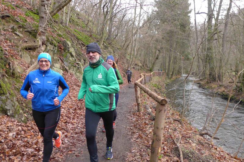 Doch erst die Arbeit, dann das Vergnügen, und so starteten die Teilnehmer je nach ihrem derzeitigen Trainingszustand über die sechs, zehn oder 20 Kilometer langen Strecken. Wer durch das schöne Harzer Selketal lieber walken oder wandern wollte, reihte sich hinter der großen Läuferschar ein. „Wir sind hier schon bei minus 20 Grad gelaufen!“, erinnerte sich Fritz Ballerstedt vom LAC Aschersleben und scherzte: „Da war sogar mein Bart gefroren!“ In der Tat erlebten Wiederholungstäter in Meisdorf schon jedes Wetterszenario, doch das spielt auch gar keine Rolle, denn der Punschlauf funktioniert ganz ohne Wettkampfgedanke. Hier zählen die große Lauffamilie, das Wiedersehen und die gemeinsame Bewegung an der frischen Luft. Die ganz fleißigen Läufer nahmen den langen Kanten über die Leimuferstraße in Angriff. Doch da mussten die Teilnehmer erst eine anspruchsvolle Steigung erklimmen, bevor die Strecke erholsam durch den waldigen Ballenstedter Forst führte.