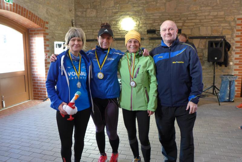 Alle Starter über sechs Kilometer fanden, nach einem kleinen, versehentlichen Abstecher der drei Führenden, dann den richtigen Abzweig hinaus aus Aderstedt, Richtung Autobahn A14, vorbei am „Bullenstedter Brocken“. Da waren im Vorjahr noch sieben Kilometer zu bewältigen. Auf Grund des schlechten Untergrundes hatte das Organisationsteam die Strecke um einen Kilometer gekürzt. Allen Genussläufern, die noch den vorbeisausenden Fahrzeugen von der Autobahnbrücke zuwinkten, kamen die ersten „Rückläufer“ schon recht früh wieder entgegen. Mit im Feld der führenden Männer war auch Dirk Meier von der Gaensefurther Sportbewegung. Am Ende musste er nur Gunnar Falke aus Calgary (Kanada) den Vortritt lassen. Der Ex-Bernburger war gerade auf Heimaturlaub und lief in Aderstedt mit einer Siegerzeit von 23:28 Minuten die sechs Kilometer zu Ende. Rang drei belegte kein Unbekannter - Peter Teutloff aus Aschersleben holte sich die Lorbeeren. Bei den Frauen liefen sogar zwei Bode-Runners auf das Treppchen! Sandra Homann nahm den Gesamtsieg mit nach Hause, Petra Becker konnte vor Karin Taraba vom PSV Bernburg den zweiten Platz für sich verbuchen. Für das leibliche Wohl war bestens gesorgt, so dass in gemütlicher Runde noch die vielen bevorstehenden Laufziele ausgetauscht werden konnten. Der Gast aus Kanada hatte am Ende nicht nur seine Finishermedaille im Gepäck. Auch eine Postkarte aus Aderstedt trat mit ihm die Heimreise an…