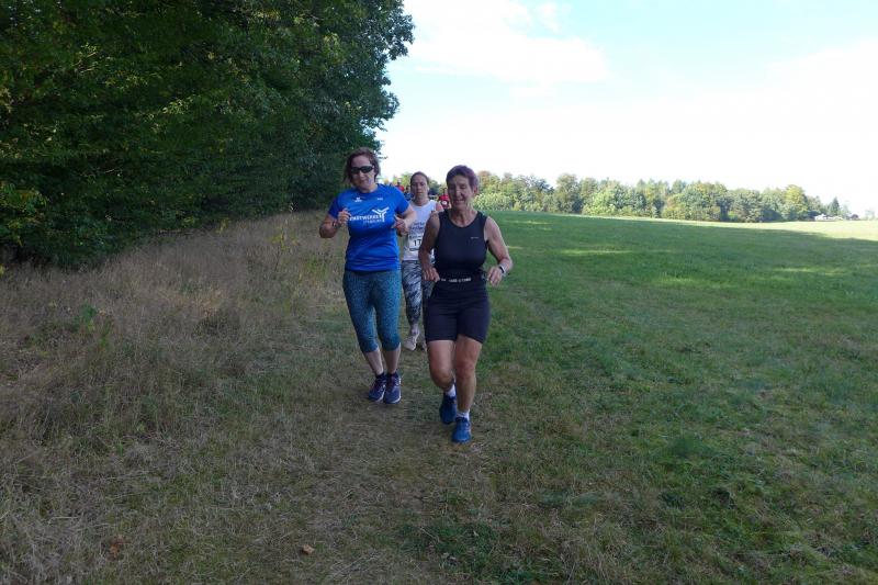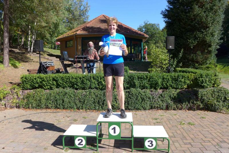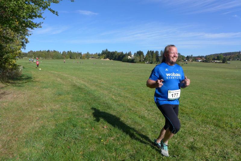 Auch Sandra Homann konnte erneut ihre gute Form vom Parchener Fiener-Crosslauf abrufen und siegte in Friedrichsbrunn in der Altersklasse W40. Im Zehn-Sekunden-Takt wurden die Läufer in Zehnerteams auf die Strecke geschickt, so dass sich im Startbereich keine Menschenansammlung bilden konnte. Da die Läufer nach dem Alphabet sortiert waren, gehörten Olaf Bothe, Jens-Uwe und Sabine Börner gleich zum ersten Starterfeld. „Oh Nein, ihr werdet mich alle jagen!“, machte sich bei Börner ein mulmiges Gefühl breit. Doch ziemlich schnell hatten alle flinken Beine die Genussläufer überholt. Auf der herrlich waldreichen Strecke ging es über zwei Fünf-Kilometer-Runden ordentlich hoch und runter. „Durchlaufen, nur nicht gehen!“, war das ausgemachte Ziel von Börner, was Atmung und Kreislauf gehörig ankurbelte. Böse nur, dass das Ziel bei Kilometer vier und acht bereits zum Greifen nahe war. Doch es ging noch einmal für fast zwei Kilometer in den Wald hinein und zwei Anhöhen wollten auch noch von den Läufern erklommen werden. Das gelang vielen gut und die langen Schatten deuteten den Vorauseilenden die nahende Bedrohung rechtzeitig an. Lag es nun an den tiefen Sonnenstrahlen die blendeten, an einem verpassten Wegweiser oder ganz einfach daran, dass Edgar Schmidtke keinen Läufer mehr vor sich hatte? Egal, auf jeden Fall ging es auf der ersten Runde nicht hinein nach Friedrichsbrunn! Schmidtke: „Es waren vielleicht 700 Meter die ich falsch gelaufen bin!“, resümierte der Bode-Runner. Spätestens auf dem Podest entspannte sich sein Gesicht aber wieder, denn trotz des Abstechers feierte der Finisher den zweiten Platz in der Altersklasse M55. „Auf die sechs Minuten Abstand zu Platz eins wäre ich nicht mehr rangelaufen!“, ist sich Schmidtke ziemlich sicher. Als dann noch Jens-Uwe Börner für den dritten Platz seinen Fotoapparat in fremde Hände geben musste, freute sich der Veranstalter WSV Grün-Weiß Friedrichsbrunn über den Jubel der Bode-Runners, die ihren beiden Lauffreunden lautstark Applaus spendeten. Schnell nahm er sein liebstes Gerät wieder an sich, sprintete doch Renate Liedtke nun auf das oberste Podest. Sie war zwar die Einzige in ihrer Altersklasse W65, hatte aber an diesem Tag alle geschlagen, die auf ihrer Couch liegen geblieben waren.