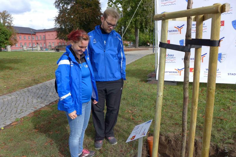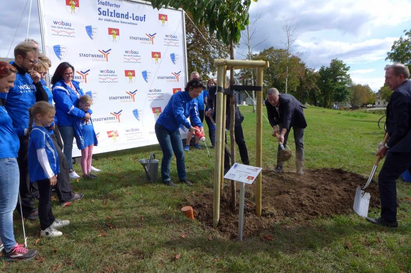 Bereits Ende Juni wurde bekanntgegeben, dass auch der Ausweichtermin für den 3. Staßfurter Salzland-Lauf am 25. September 2020 nicht stattfinden wird. Stattdessen passte nun die geplante Baumpflanzaktion am Stadtsee perfekt in die Europäische Nachhaltigkeitswoche der Vereinten Nationen. Über das Portal #tatenfuermorgen setzte die Laufgruppe der Gaensefurther Sportbewegung zusammen mit ihren Unterstützern das Projekt „KRAFT PFLANZEN - LEBEN ATMEN“ in die Tat um. „Unser Baum für den nötigen langen Atem und die Hoffnung, im nächsten Jahr wieder den Staßfurter Salzland-Lauf starten zu können!“, so die Organisatoren. Zum Nachhaltigkeitsziel waren sich alle einig, denn Bäume binden das schädliche CO2 und liefern uns den lebensnotwendigen Sauerstoff. Letzteres nahmen die Bode-Runners zum Anlass, Oberbürgermeister Sven Wagner, Ralf Klar und Eugen Keller als Geschäftsführer der Wobau und Stadtwerke, ein druckfrisches Gaensefurther Laufshirt zu überreichen. Damit ausgestattet und als Ehrenmitglieder des Vereins aufgenommen, sind alle drei eingeladen, eine Laufstrecke zum 3. Staßfurter Salzland-Lauf persönlich anzugehen. Ob als Walker oder Läufer auf der 1,5 Kilometer langen Strecke, den sechs oder sogar zehn Kilometern ist dabei vollkommen egal, denn den Bode-Runners ist es wichtig, den Laufspaß an der frischen Luft zu vermitteln, fit für den Alltag zu werden und vor allem, Staßfurt zu bewegen - 28. Mai, bist auch du dann mit dabei?