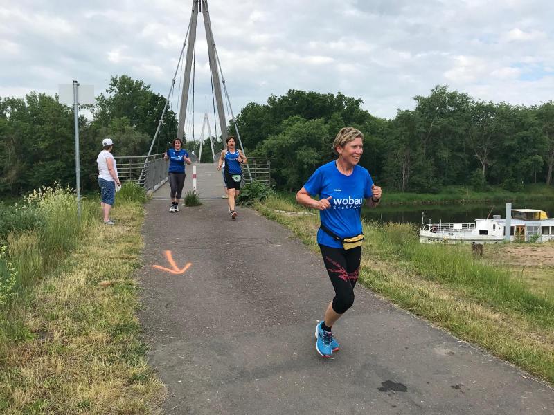 Zehn Starter der Bode-Runners liefen die Zwölf-Kilometer-Strecke, die entlang der Saale bis nach Gröna und wieder zurück führte. Die wald- und wasserreiche Laufstrecke forderte auch auf der „kurzen“ Strecke ihren Tribut. Umso schöner, dass die Organisatoren vorgesorgt hatten und die Verpflegungspunkte immer zur rechten Zeit kamen. „Durch die vielen schattigen Abschnitte war es dennoch gut auszuhalten und noch recht angenehm zum Laufen“, hielt GSB-Läuferin Janine Wuwer fest. Auch bei den Halbmarathonis, die noch ein wenig weiter die Saale entlang liefen, bevor sie ebendiese überquerten, waren die Verpflegungspunkte begehrte Flüssigkeitsspender. Auf diese 21,1 Kilometer wagten sich vier Bode-Runners.