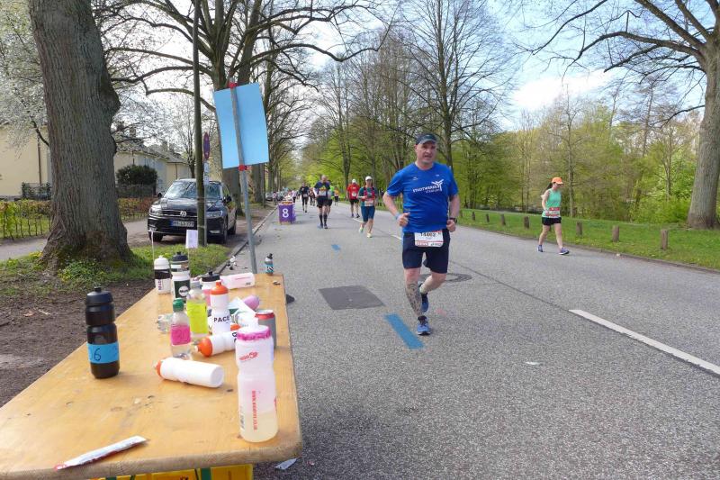 In Börners Zeitplan passte alles wieder und ein Foto nach dem anderen dokumentierte nicht nur Bothe, sondern auch das verrückte Drumherum an der Laufstrecke. Eine Band löste die nächste ab, Picknick am Streckenrand und gut gelaunte Hamburger, die ihre Marathonläufer Meter für Meter durch die Stadt trugen. Die regelmäßig eingerichteten Verpflegungspunkte nahm Bothe alle mit: "Trinken!", das hatte er sich gemerkt! Im Ziel feierte man in der Zwischenzeit neue Streckenrekorde.