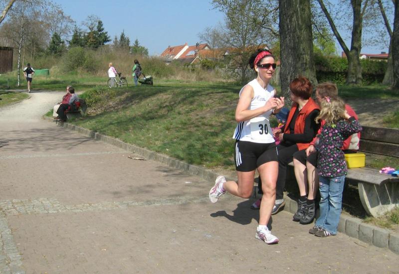 Inzwischen erfolgte schon der Start über die wald- und seenreiche 10, 7 Kilometer lange Strecke. Der Lauf war wunderschön, allerdings mussten die Aktiven schon konzentriert nach unten schauen, um nicht über die aus dem Boden herausragenden Wurzeln zu stolpern. Ralf Schmidtschneider aus Löderburg und Renate Liedtke gingen zu Boden und kamen mit blutigen Knien im Ziel an. Auch wenn der Lauf aus den Vorjahren bekannt war, knobelten die Läufer durch die vielen Kursänderungen wieder, wie viel noch bis zum Ziel zu laufen war. Nach mehr als neun Kilometern verkündete endlich ein Schild, dass man nur noch 1 000 Meter zurücklegen musste. Dann schaffte man es mit hängender Zunge noch zum Getränkestand, der bei Temperaturen von um die 20 Grad vergebens auf der Strecke erwartet wurde. Allerdings ging es allen Teilnehmern gleich.
