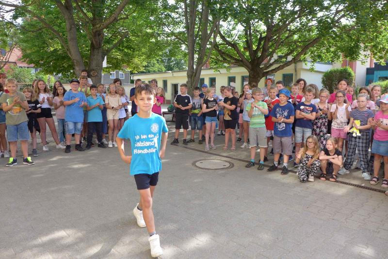 Insgesamt schafften es fünf Grundschulen in die Wertung. Ganze 56 Förderstedter Läufer folgten auf Rieke und nach dem Zusammenzählen der Zielzeiten war es am Ende tatsächlich Sekundensache! Die Uhlandschule hatte 30 Teilnehmer am Start und sicherte sich den dritten Platz, 32 stellte die Grundschule Rathmannsdorf und immerhin 19 kamen aus Löderburg. Mit nur sechs Startern aus Groß Börnecke hatte diese Grundschule quasi keine Chance. Doch diese sechs waren mit dabei und können im nächsten Jahr vielleicht noch vier weitere Freunde vom Laufspaß überzeugen, um erst einmal in die Wertung zu kommen. Anstecken konnte man sich bei den über 90 Goethe-Grundschülern, die allesamt vom Lauffieber infiziert waren. Das spürte man nicht nur als Teilnehmer auf der Strecke, sondern auch am Streckenrand. Die anfeuernden Zuschauer und die Plakate an der Strecke waren nicht zu übersehen. Was für eine Organisationsarbeit der Eltern und Lehrer, so lobten Schirmherr und Abteilungsleiter die gelungene Zurückeroberung.