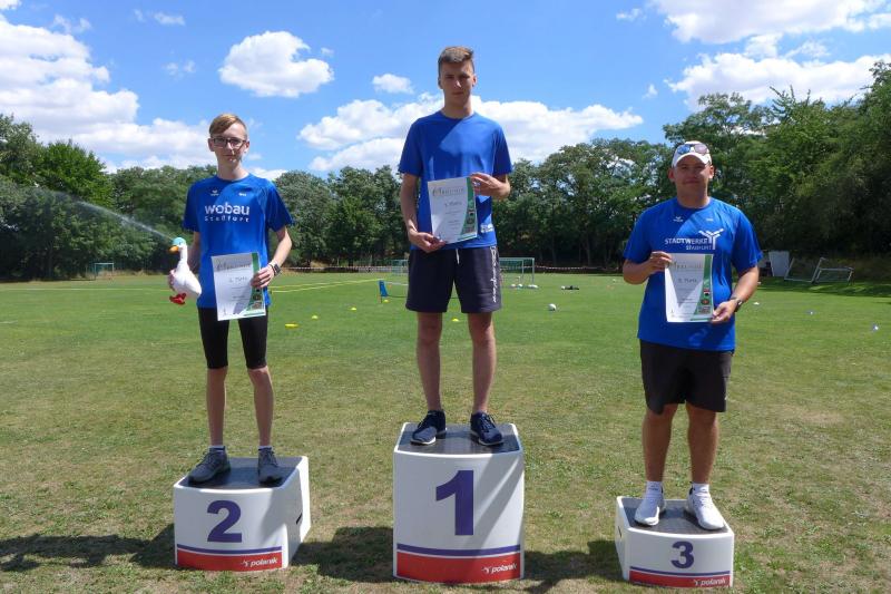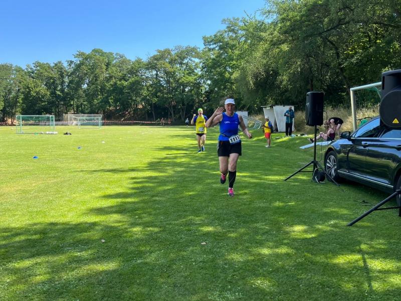 Anders die Läufer der Strecken im vierten Wertungslauf der Solvay-Cup-Serie über 5,7 und 9,8 Kilometer, die den heißen Temperaturen etwas länger ausgesetzt waren. Über den saftig weichen Spielrasen ging es für die Strecken gemeinsam vom Sportplatz zur Bahnunterführung und dann auch bald hinaus, rund um den Gierslebener Hain. Genau hier begann vor drei Jahren Rinaldo Schielkes „Laufbahn“ bei den Bode-Runners. Als er 2019 mit dem Gesamtsieg über die Kurzstrecke sein mögliches Potential zeigte, waren die Bode-Runners von dem Neuzugang sehr angetan. Aktuell holte er sich in Giersleben den Altersklassensieg in der M30 auf der Wertungsstrecke über 9,8 Kilometer und musste nur Minh Lé vom PSV Bernburg den Vortritt im Gesamtklassement der Männer lassen. „Im nächsten Jahr rutsche ich dann in Lé`s Altersklasse!“, malt sich Schielke schon jetzt die spannenden Rennen mit dem Lauffreund und Konkurrenten aus. In der Altersklasse M55 konnte sich auch noch Peter Brauer über seinen zweiten Platz freuen.