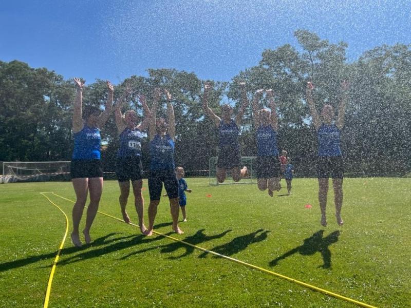 Der Schnupperlauf über einen Kilometer war für den Bode-Runners-Nachwuchs schnell Geschichte, so dass sich Lenya und Emily im Schatten oder unter dem Rasensprenger des SV Grün-Weiß Giersleben schnell wieder akklimatisieren konnten.