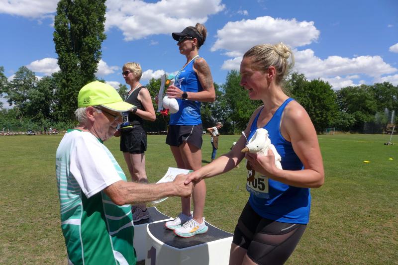 Noch einige Bode-Runners wurden in Giersleben auf das Treppchen gerufen. In sengender Mittagsglut wurde Peter Gieseler vom gastgebenden Verein nicht müde, allen Platzierten mit einem kräftigen Händedruck, einer Umarmung oder sogar mit Küsschen hier und Küsschen da zum erlaufenen Erfolg zu gratulieren. Man kennt sich eben, eine herzliche und ungezwungene Atmosphäre, zu der die Bode-Runners der Gaensefurther Sportbewegung im nächsten Jahr gerne wieder auflaufen.