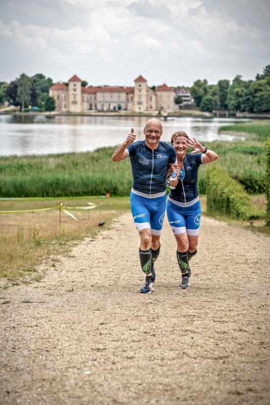 Silke Ludßuweit (w55) ließ sich von den Triathleten der Gaensefurther Sportbewegung anstecken, die nun schon zum vierten Mal bei diesem tollen Event nördlich von Berlin an den Start gehen wollten. Am letzten Juniwochenende zog es über 500 Schläufer (Schwimmer + Läufer) nach Rheinsberg mit seinen wunderschönen Seen. Bei 30°C Laufen ist es schon eine ziemliche Herausforderung. Im Wald ist es natürlich angenehmer und dabei immer mal im Wasser abzutauchen, ist natürlich noch besser.