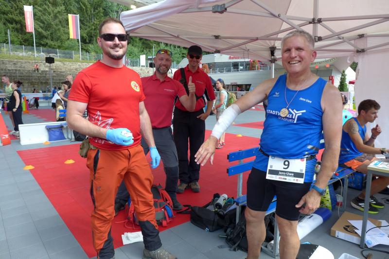 Stefan Sindermann kam unverletzt und sichtlich zufrieden über den durchgestandenen Trail in die Arena zurück. Auf acht Kilometer waren vier Gaensefurther Damen unterwegs, darunter auch das Geburtstagskind Kirsten Geist. Ihren Ehrentag krönte sie mit einem dritten Platz in der Gesamtwertung, es gab also passender Weise ein Geschenk. In den Altersklassenwertungen wurden wieder gute Plätze erlaufen.<p>