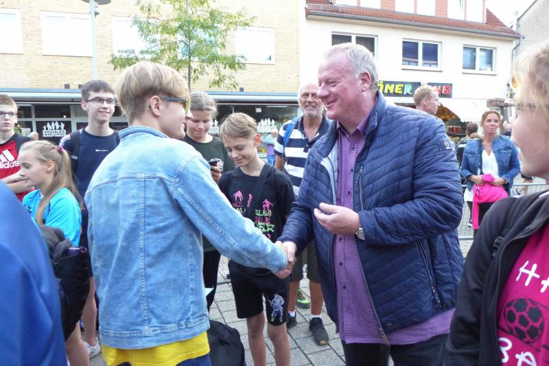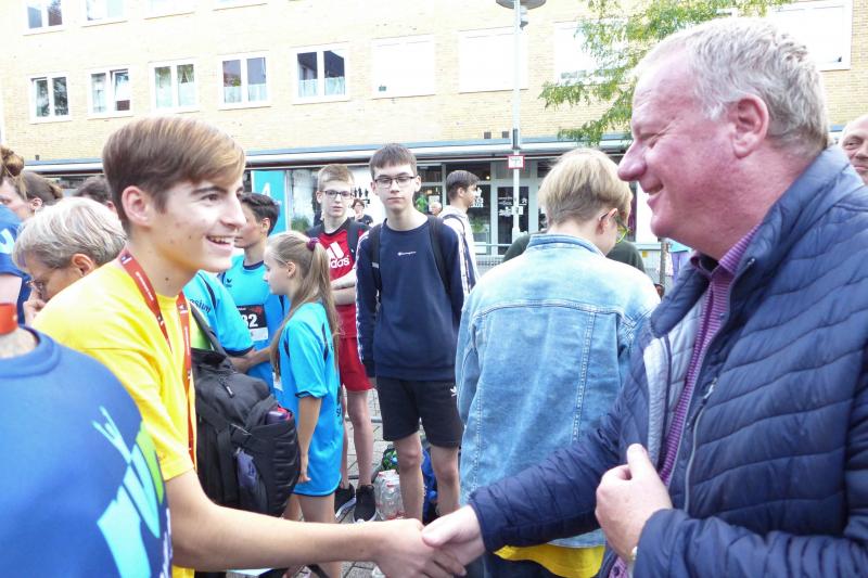 Die alte Tradition, dass der Staßfurter Bürgermeister einen Startschuss übernimmt, wurde auch in diesem Jahr gelebt. Der "Neue" Bürgermeister René Zok nahm diese Ehre schon in seiner ersten Amtszeit wahr. Weitergeführt durch Sven Wagner, stand nun wieder Zok am Starterfeld um die Schüler auf die zwei Kilometer lange Strecke zu schicken. Kurz vor dem Start durch die Lehrter Innenstadt, herrschte unruhiges Gedrängel an der Startlinie. Jeder wollte sich die beste Startposition sichern, um nach dem Startschuss schnell loslaufen zu können. Anders als bei großen Laufveranstaltungen gewohnt, gab es beim Citylauf keine Brutto- und Nettozeit. Hier galt es also weit vorne zu starten, um nach dem Startschuss möglichst wenige Sekunden zu verschenken. Und natürlich hatten die Profis in der ersten Reihe nichts zu verschenken. Letze Tipps kamen von keinem geringeren als Uwe Oswald, Schulleiter der Sekundarschule Am Tierpark und bis vor kurzem noch selbst als begeisterter Läufer aktiv.