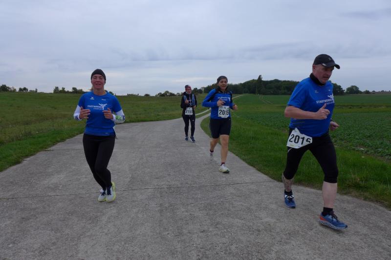 Ganz Entspannt dagegen die vier Bode-Runners auf der 21,1 Kilometer langen Halbmarathonstrecke, die jeden Meter ihrer Strecke genossen. Oft gab der Kurs den Blick auf Ostsee und Steilküste frei, was den rauen Wind dann besonders präsent werden ließ. Doch auf dem Weg zum Kap schob er meist von hinten, was zum Erklimmen der recht hügeligen Landschaft von Vorteil war. Bald waren dann auch die Leuchttürme am Kap zu sehen. Kopf aus und genießen, nur keine Gedanken an den Rückweg verschwenden, war die Devise! Nach der Wende am Kap Arkona ging es genau diesen Weg wieder zurück, und wie schon befürchtet, hatte die frische Brise für den Rückweg nicht gedreht. Mit dem Einlauf in das Seebad mehrten sich dann wieder die Zuschauer an der Strecke. Das war dringend nötig, mussten die letzten 200 Meter bis zum Ziel doch durch den tiefen Sand zurückgelegt werden. Zusammen mit dem Publikum, das sich mit lautstarkem Anfeuern warm hielt, gelang es den meisten aber gut. Zum Glück hatte sich auch der angekündigte Regen bis zum letzten Zieleinlauf zurückgehalten. Die Party im großen Festzelt ging noch bis in die Abendstunden.
