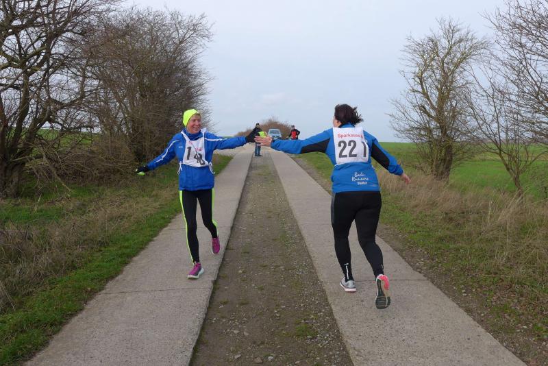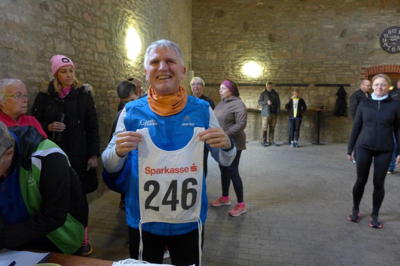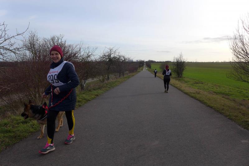 "Start um Zehn, elf Uhr Siegerehrung, ab 13 Uhr Regen!", so konnten die Bode-Runners den groben Fahrplan aus dem Chat der Trainingsgruppe entnehmen. Bis Mittag war also gutes Wetter angesagt, worauf sich auch zahlreiche Läufer und Walker zum Neujahrslauf in Aderstedt einfanden. Die Wiedersehensfreude war groß, denn nicht alle hatte man vorige Woche bereits beim Punschlauf gesehen. Die Höhe der Startgebühr konnte sich jeder Teilnehmer selbst überlegen und in der bereitgestellten Spendenbox entrichten: „Wir brauchen neue Startnummern!“, galt der Ansporn für eine hohe Summe. Dabei befanden die meisten Starter doch gerade die urigen Nummern aus Stoff, die als Leibchen um den Oberkörper gebunden wurden, als sehr originell. Im strahlenden Sonnenschein hielten die Vereine oder teilnehmenden Familienmitglieder ihre ersten Gruppenbilder für die Nachwelt fest. Die junge Hündin Paula, die zum ersten Mal mit den Bode-Runners der Gaensefurther Sportbewegung auf Reise ging, hielt mit Frauchen Renate noch respektablen Abstand zur Gruppe. Bei der Erwärmung in der großen Festscheune warteten die beiden lieber brav vor der Tür.