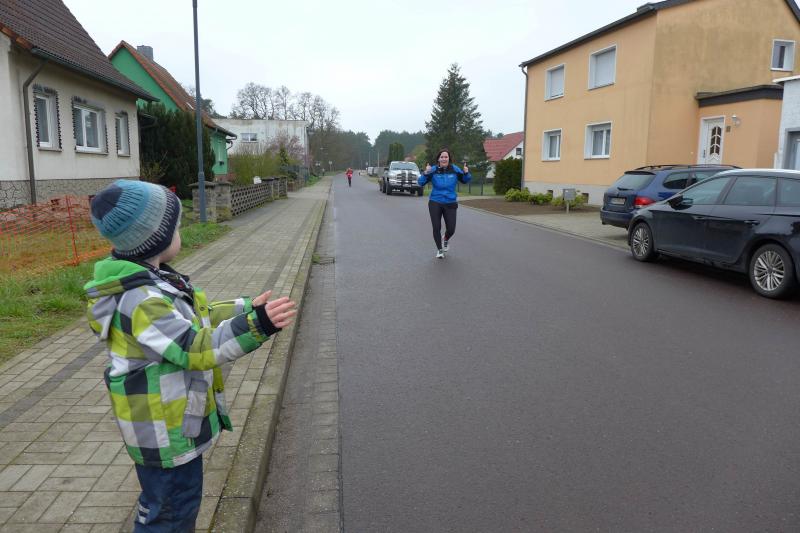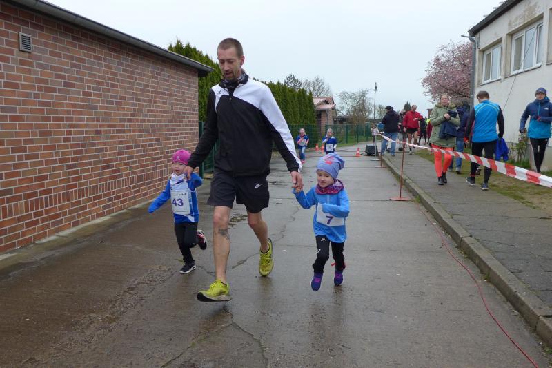 Zeitgleich und durchaus auch bergig, nahmen 150 Kilometer entfernt, sechs weitere Gaensefurther den bereits 41. Osterberglauf in Schlagenthin unter die Lupe: „Den wollte ich immer schon mal laufen!“, stöhnt Stefan Sindermann über den vollen Laufkalender und freut sich, dass es in diesem Jahr terminlich mal gepasst hatte. Der fleißige Volksläufer versucht alle drei ausgeschriebenen Lauf-Cups in Sachsen-Anhalt zu bedienen, was aber nicht einmal theoretisch umzusetzen wäre. Meist mit im Schlepptau die Familie Siebert mit Emily und Lotta, die in der Wertung des Elbe-Ohre-Cups schon fleißig Punkte gesammelt haben. Ausgemachtes Spiel, als Sabine Börner schmunzelnd die Startnummern über den Ein-Kilometer-Lauf in den Händen hielt: „Emily Nummer „Eins“ und Lotta, dir kann mit der Nummer „Sieben“ ja auch nichts passieren!“ Damit stand Emily nun mächtig unter Druck. Hinzu kam, dass scheinbar Lauffreund Aaron Wauschkuhn (Oschersleben) die Startaufstellung verpassen würde. Doch kurz vor dem „Auf die Plätze, fertig, los!“ stand er, wie schon so oft, neben ihr an der Startlinie. Die beiden machten mit den Gesamtsiegen weiblich und männlich natürlich ihr Ding und klein Lotta freute sich neben ihrer Glückszahl auf der Brust auch noch über ein Osterei in ihrer Lieblingsfarbe. Auch für die „Großen“ gab es nach getaner Laufarbeit bunte Eier im Ziel. Trotz des unangenehmen Nieselregens war es für Sindermann weitaus angenehmer zu laufen als bei der Schlammschlacht vor einer Woche in Grillenberg. „Herrliche Strecke!“, schwärmte der Lauffanatiker im Schottenrock. „Dieser Eichberg!“, holte Kathleen Mahler nach der Ziellinie tief Luft nach ihrem ersten OsterBERGlauf in Schlagenthin. Nach diesen Anstrengungen hatten sich die fleißigen Bode-Runners der Gaensefurther Sportbewegung allemal ein ruhiges Osterfest mit der einen oder anderen Leckerei verdient…