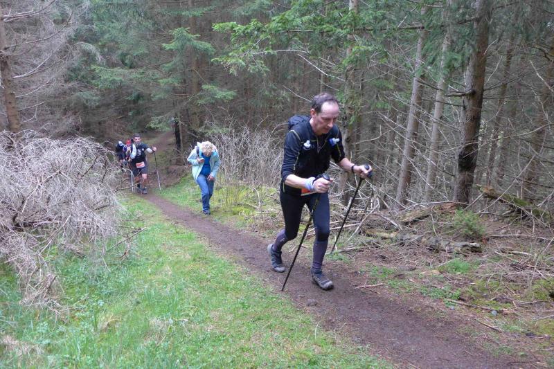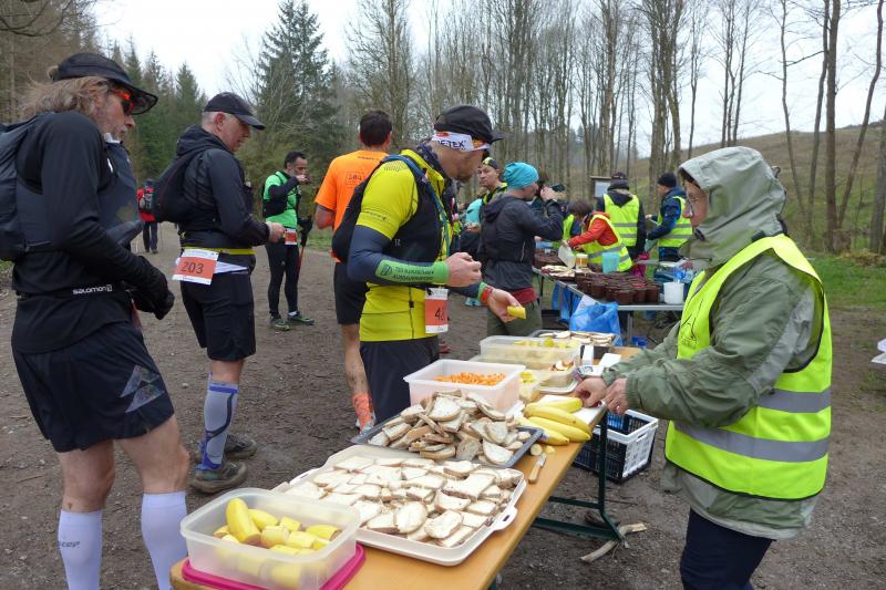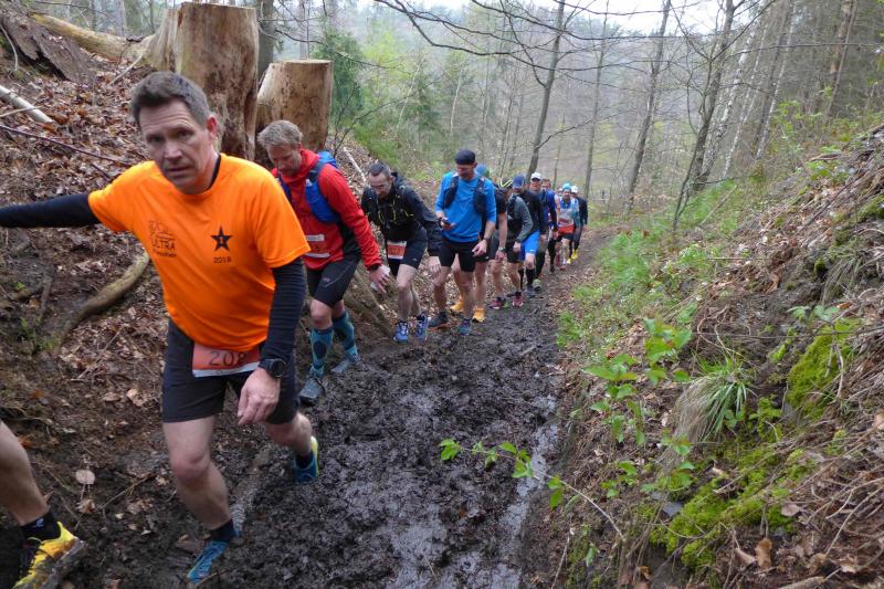 Einen Tag später waren dann die Langstreckenläufer der Gaensefurther Sportbewegung gefordert, denn die 42. Harzquerung stand auf dem Plan. Jens-Uwe Börner hatte für weite 51 Kilometer gemeldet. Petra Becker und Detlef Schäfer standen mit ihm gemeinsam am Start in Wernigerode, waren aber nicht ganz so verrückt und „nur“ auf 25 Kilometer aus. Durch den schlechten Zustand der Wege mussten sich aber alle Teilnehmer auf Umleitungen und damit längere Strecken einstellen. Gleich zu Beginn ging es heftig bergauf und riesige Matschpfützen sorgten für nasse Schuhe. Schlechte Voraussetzungen für eine Langdistanz, begünstigt Feuchtigkeit doch oft eine Blasenbildung. Ein Überholen war schwierig, denn die lange Läuferkette schob sich schleppend die schmalen Steigungen hinauf. Zeit, den Blick schweifen zu lassen, der anstatt auf dichte Wälder oft über weit gerodete Flächen im Horizont verschwand. „Hier war doch vor 6 Jahren noch Wald!“, schüttelte Börner in Erinnerung an seine letzte Harzquerung traurig den Kopf und registrierte stattdessen den Geruch der riesigen Holzstapel frisch geschlagener Bäume am Wegesrand. Aber nicht nur das frustrierte. Auch sein Zeitplan geriet komplett aus den Fugen, denn die Ankunftszeit der Harzbahn, die er sich auf den Unterarm geschrieben hatte, war schon längst verstrichen. Um sie am Kreuzungspunkt fotogarfisch festhalten zu können, hätte er schon fünf Kilometer weiter sein müssen. Der 25-er Kurs mit Becker und Schäfer war bereits abgebogen und in Richtung Ziel unterwegs, als dann auch Sabine Börner ab Benneckenstein die 30 Kilometer lange Wanderstrecke in Angriff nahm. Abenteuerlich führte sie auch durch Bachläufe, Seile halfen an steilen Passagen hinunter oder hinauf und immer wieder galt es Platz zu machen, wenn sich die schnelleren Läufer von hinten laut bemerkbar machten: "Links! Ich komme von rechts!" Auf das Überholen des Gatten wartete sie allerdings vergebens, denn zu allem Unglück verpasste er den richtigen Abzweig. Diesen Irrtum bemerke er erst nach zwei Kilometern, da es keine Markierungen und Streckenposten mehr gab. Bis zum Abzweig nochmal zwei Kilometer zurück und Läufer überholen, die man ja schon mal einkassiert hatte - Börners Laune war verständlicher Weise auf dem Tiefpunkt.