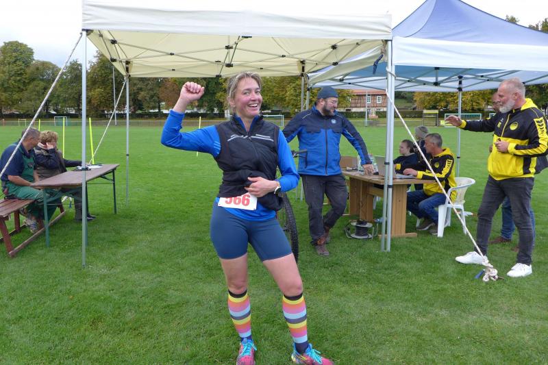 Naturlauf Nummer zwei hatten Gaensefurther dann auch am Folgetag, beim zehnten Friedrichsbrunner Herbstcrosslauf. Niemand hat mit ihm gerechnet, Stampnik war wieder da! Keine 24 Stunden vorher über den Brocken einen Marathon gefinisht, war er selbst nicht davon überzeugt, über die gemeldeten fünf Kilometer wirklich in das Ziel zu kommen. Nachdem für Jens-Uwe und Sabine Börner der Startschuss über zwei Runden von jeweils fünf Kilometern erfolgt war, begab sich Stampnik zusammen mit Nicole und Jens Schlottag auf die Verfolgungsjagt ihrer Vereinskollegen. Bei eisig frischen vier Grad Celsius ging es vom Kurpark in die weite Flur, über herrlich saftige Wiesen, dichte Mischwälder und so einige Höhenmeter. Börners waren gerade dabei die letzte krasse Steigung zu bezwingen, als die ersten Sprinter von hinten nahten. Als Dritter grüßte der Marathonmann vom Vortag, überholte das Ehepaar schwer atmend und hielt seine Platzierung bis in das nahe Ziel. Gratulation an Stampnik beim Durchlauf, mussten Börners ja erst noch ihre zweite Runde absolvieren.