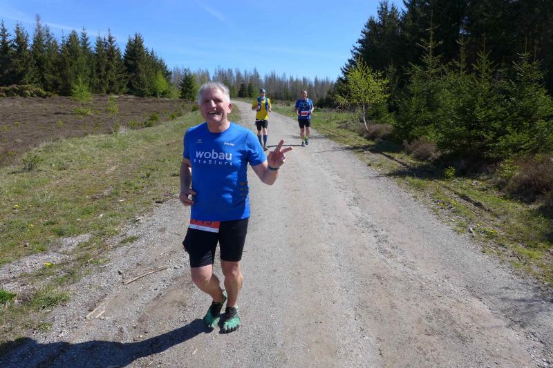 Detlef Schäfer und Jens-Uwe Börner waren einen Tag später Teilnehmer der 43. Harzquerung von Wernigerode nach Nordhausen und etwas länger als eine Stunde unterwegs. Mitte April teilten die Organisatoren des Ski-Clubs Wernigerode bereits mit, dass die 1.200 Startplätze für den beliebten Crosslauf ausgebucht sind. Los ging es bei herrlichstem Laufwetter, bergauf und bergab durch viele aufgeräumte Abholzungsflächen. Doch die beiden Bode-Runners querten nicht ohne Grund auf 54 Kilometern das Harzer Land, berichteten sie doch auch von besonders schönen Streckenabschnitten und frischem Grün. Während Schäfer die anspruchsvolle Strecke nach 07:22 Stunden absolviert hatte, benötigte Börner acht Stunden. Überglücklich im Ziel, blicken die beiden Ultraläufer dem Sachsentrail im Juni nun weitaus gelassener entgegen.