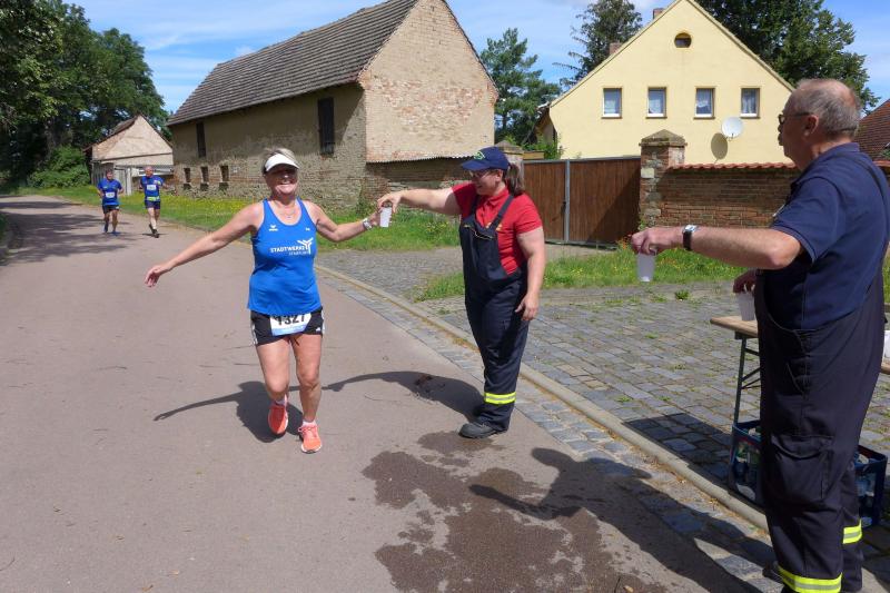 An den strömenden Regen im Vorjahr und dem Ausharren unter einem Zelt konnten sich die Starter noch ganz genau erinnern. Diesmal war alles wie immer: Heiß in Giersleben! Das hielt die Laufgemeinschaft aber nicht davon ab, für Simone Herbst vom SV Lok Blankenburg kurz vor dem Start ein kraftvolles Geburtstagslied zu singen. So gut aufgewärmt, ging es in leichten Wellen über die weichen Wiesen des Hains. Wer den Schwierigkeitsgrad steigern wollte, der hatte die Langdistanz über 13,6 Kilometer gewählt. Mit einem ordentlichen Abstecher hinauf zum Gedenkstein Herzog Heinrichs, hatten diese Weggefährten am Ende auch genügend Höhenmeter in den Beinen. „Unsere Bergläufer!", begrüßten die Bode-Runners ihre pustenden Lauffreunde im Ziel mit Applaus und Glockengeläut. "Es war ein wunderschöner, abwechslungsreicher Lauf durch die Natur, der viel Spaß gemacht hat!", lobte Anja Kroner und fand die vielen Verpflegungsstationen in Anbetracht des strahlenden Sonnenscheins als sehr umsichtig vom Veranstalter. Bei knusprigem Spanferkel und leckerem Kuchen feierten die Gaensefurther so einige Altersklassenplätze. Bis zum Schierker Sommerlauf im August gibt es nun eine kleine Sommerpause für die Bode-Runners. Sicher wird sich der ein oder andere Volkslauf in den Urlaubsregionen finden lassen.