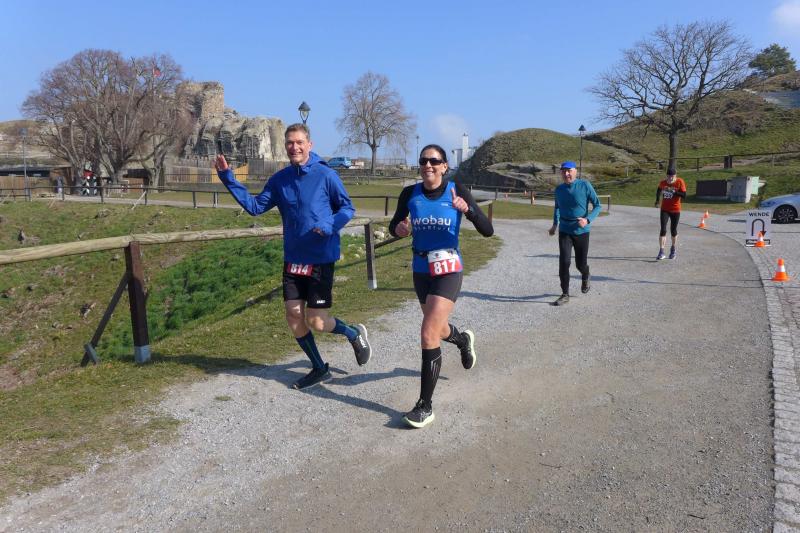 „Strecke, Wetter, Stimmung, alles erste Klasse!“, votierten die Teilnehmer nach dem Zieleinlauf in das Blankenburger Sportforum am vergangenen Sonntag. Mit von der Partie, 32 Leichtathleten der Gaensefurther Sportbewegung, die sich beim Hoch und Runter über und um die Burg Regenstein wieder nichts schenkten. Ein Blick in die Ergebnislisten gab dem harten Training der letzten Wochen Recht, brannten nach dem Durchqueren der Hecklinger Höhen doch öfter mal die Waden. Allen voran, beeindruckte aber erstmal der Nachwuchs. Mit dem Kindergartenlauf über 600 Meter erledigten nicht nur Mama und Papa gleich ihre Erwärmung, auch Oma und Opas Sportlerherzen schlugen beim Anblick der flinken Beinchen einige Takte höher. Rieke Lucie Zaschke (WJ U14) wagte sich auf den 5,5 Kilometer langen Jedermannslauf und wurde für ihre Laufarbeit nicht enttäuscht. Dicht auf den Fersen von Marc Krüger (MJ U20), belegten beide in ihren Altersklassen einen Podestplatz und lieferten über diese Distanz die schnellsten Zielzeiten der Bode-Runners ab. Überhaupt landeten fast alle Gaensefurther über die Kurzdistanz auf dem Treppchen. Dabei wartete die 5,5-Kilometer-Strecke mit einem beachtlichen Anstieg zum Raubgrafentunnel auf. Doch genauso brachial ging es mit Schwung auch wieder zurück ins Blankenburger Sportforum, wo die Finisher dann ihre Plätze feiern konnten. Nach dem gemeinsamen Start der 9,5- und 14-Kilometer-Läufer, war zunächst die Burg Regenstein als Ziel anvisiert. Wer zu schnell anging, hatte wohlmöglich seinen Plan ohne die Höhenmeter gemacht. Da machte ein gut gelaunter Josef Hindricks wieder Mut, der seine Anstiege auf der 14 Kilometer langen Walking-Strecke bereits absolviert hatte und die schwer atmenden Bergauf-Läufer anfeuerte: „Das ist nicht der letzte Berg!“ Nach der obligatorischen Wende oben an der Ruine, ging es auch gleich wieder hinab, keiner hatte Zeit für den herrlichen Rundumblick. Solche Begegnungen im Bild festgehalten, entdeckte Jens-Uwe Börner auf der 10-km-Strecke erstmals die Kleinen Sandhöhlen: „Ich bin doch hier schon so oft gelaufen!“, freute er sich über die neuen Eindrücke, welche natürlich auch gleich fototechnisch eingefangen wurden. Solch einen Abstecher würden seine Lauffreunde nie machen, waren doch alle sehr auf Tempo und Strecke fixiert. Und das war auch gut so, flog Francesco Navarra doch als erster „Gaenserich“ wieder ein. Auch Anja Kroner hatte vom Bergtraining profitiert und lieferte bei den Damen die schnellste Zielzeit über zehn Kilometer ab. Auf die Gesamtsiege hatten die Bode-Runners in Blankenburg keinen Einfluss, klingelte doch aber bei den Altersklassenplatzierungen ordentlich das Punktekonto. Eine unbewusste Punktlandung erlebte Kirsten Geist nach dem Passieren der Zielschleife: Auf die Sekunde genau absolvierte sie die 13,9 Kilometer-Distanz nach einer Stunde, 16 Minuten und 47 Sekunden, genau wie beim 27. Blankenburger Regensteinlauf im Vorjahr. Wie auch Katrin Winkler-Hindricks, die in beeindruckender Form die Berge hoch und runter lief, gelang beiden ein zweiter Platz in den Altersklassen W55 und W60. Spätestens nach diesem zweiten Rennen im Novo Nordisk Landescup Sachsen-Anhalt sind die Gaensefurther richtig in Schwung gekommen. Am 06. April besteht mit dem Einetallauf Aschersleben die nächste Möglichkeit im Cup Punkte zu sammeln. Hier steigt dann auch der Solvay-Cup wieder in die Laufsaison mit ein. Erstmals können dort fünf Bonuspunkte für das Absolvieren der längsten Strecke eingefahren werden, in Aschersleben wäre das die Halbmarathondistanz. In der Heimat konzentrieren sich die Bode-Runners derzeit auf die Runden durch die Staßfurter Horst, wo am 09. Mai der 7. Staßfurter Salzland-Lauf auf neunen Strecken gelaufen werden soll. Es ist nicht mehr weit bis zur Austragung, wissen die Organisatoren und freuen sich, dass sich die Startplätze langsam füllen. Bis zum 06. Mai 2025 um 24 Uhr besteht noch die Möglichkeit sich online über www.gaensefurther-sportbewegung.de anzumelden. Wer sich vielleicht gemeinsam mit den Gaensefurthern auf das Laufevent vorbereiten möchte, ist zum Staßfurter Lauftreff herzlich eingeladen. Jeden Donnerstag starten unterschiedliche Tempogruppen ab 17:30 Uhr vom Parkplatz hinter dem Sparkassenschiff in der Hecklinger Straße. Salzland-Lauf am 09. Mai – sei gerne auch dabei…