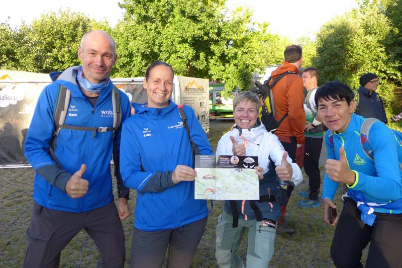 Ja, laufen können die Bode-Runners - aber auch wandern? Das bewiesen Katrin und Mario Kreutzmann unlängst auf ihrem 100-Kilometer-Mammutmarsch von Potsdam nach Berlin und wieder zurück. Die beiden waren also bestens vorbereitet, einen 30-Kilometermarsch rund um Blankenburg dranzuhängen. Den Start hatte die Laufgruppe als Jubiläums-Geburtstagsgeschenk für den 50-jährigen Mario verpackt und dieser sollte nun eingelöst werden. Besondere Herausforderung: die Strecke war des Nachts zu bewältigen. Nancy Bothe und Jens-Uwe Börner schlossen sich den erfahrenen Wanderleuten an. Lange suchte Börner sein Equipment zusammen: Spezielle Wander-Barfuß-Schuhe waren gekauft, Stirnlampe, Trinkflasche, Jacke? „Aber eine lange Hose ziehe ich nicht an!“, beobachtete er das Outfit der anreisenden Wanderfreunde. Mit einem Eierlikörchen stimmte man sich auf die Wanderung ein: „Auf eine verletzungsfreie Nachtwanderung!“, machten sich die Bode-Runners Mut. Mit sechs Stunden Gesamtwanderzeit hatten sich die Lauffreunde ein realistisches Ziel gesetzt. Bevor die Teilnehmer im Naturerbewald Blankenburg verschwanden, verwöhnte sie die Abendsonne mit ihren letzten wärmenden Strahlen. Nun gab nur noch der Lichtkegel der Stirnlampen den Weg vor. Kein Schwitzen, absolute Ruhe und ein sternenklarer Himmel belohnte die nächtlichen Wandervögel. Jede Menge Stempelstellen der Harzer Wandernadel wurden angelaufen. So unter anderem die Regensteinmühle oder die Höhlenwohnungen auf dem Schäferberg. Am Langensteiner Sportplatz war dann ein Verpflegungspunkt eingerichtet und genau wie bei Laufveranstaltungen auch, gab es: „Nudeln!“ Erfreuten sich die Bode-Runners noch bester Gesundheit, wurden bereits erste Blasen versorgt. Der nächste Anlaufpunkt war die Gedenkstätte Langenstein-Zwieberge. Die Temperatur sank nun in den einstelligen Bereich aber 20 Kilometer waren bereits geschafft. Ein schneller Wanderschritt und ein paar Höhenmeter verhalfen wieder zur richtigen Betriebstemperatur, bevor die Sandhöhlen im Heers erkundet wurden. Keine Wanderung um Blankenburg ohne die Burg Regenstein. Die Treppen, die Dunkelheit und die zunehmende Müdigkeit verlangten nochmal volle Konzentration. Um 2:16 Uhr stoppte Börner seine Uhr. „Guten Morgen und herzlich willkommen!“, wurden die Finisher im Ziel von den legendären Harzer Hexen empfangen. In Handarbeit die persönliche Urkunde mit der Zielzeit: „Sechs Stunden und 15 Minuten – wir haben es geschafft!“, freuten sich die Bode-Runners. Eine Medaille gab es obendrauf: „Jetzt aber nach Hause und ab ins Bett!“, diente der Sonntag dann vollkommen der Regeneration.