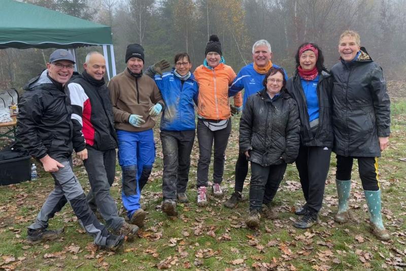 Im November war es dann soweit, die Geburtstags-Bäume sollten gesetzt werden! Über 70 Teilnehmer hatten sich zur Pflanzung von insgesamt 4.500 Bäumen im Südharz zusammengefunden. Unter ihnen auch neun Bode-Runners, die nicht laufend, sondern diesmal mit Spaten und vollem Körpereinsatz ihre Kraft und Ausdauer unter Beweis stellen wollten. Während die starken Männer die Pflanzlöcher in den feuchten Waldboden zauberten, sorgten die Mädels für die bunte Vielfalt und das fachgerechte Andrücken der Setzlinge. Zum Glück war Petrus einsichtig und hatte eine längere Regenpause angeordnet. Doch der kalte Nebel sorgte für eine frostige Umgebungstemperatur, so dass nur Arbeit im Akkord für eine angenehme Betriebstemperatur sorgte. Neben immergrünen Zedern als einziges Nadelgewächs, wurden Rotbuchen, Eichen, Ahorn, Haselnuss und Kastanien gesetzt. „So dicht?“, wunderten sich die Gärtner auf Zeit über die enge Anordnung auf dem großen, eingezäunten Areal. Nur die Stärksten werden es schaffen, wissen die anleitenden Experten und freuten sich über so viel Engagement ihrer Gäste und gaben auch sonst viel Wissenswertes über Wald, Klima und Borkenkäfer weiter. „100!“, schallte es nach einiger Zeit laut über das Gelände. Applaus und Jubel von den Anwesenden folgten prompt und ein Glücksgefühl, das nicht in Worte zu fassen war. Mitgezählt hatten die Bode-Runners nicht. Wichtig war, dass nach fünf Stunden alle 4.500 Bäumchen einen Platz gefunden hatten.