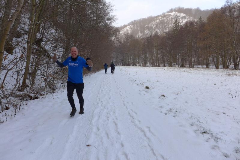 Die Nacht hatte das Selketal bei Meisdorf noch in winterliches Weiß gehüllt. Dass dennoch über 100 Laufbegeisterte den kalten und teilweise rutschigen Wetterbedingungen trotzten, freute den gastgebenden SV Germania 1928 Meisdorf sehr. Den gemeinsamen Start für alle Strecken vollzog Ulrich Küsters mit einem knallenden Luftballon. Schnell hatte das Läufer- und Walkerfeld den Ortsausgang erreicht und tauchte mit dem Naturlehrpfad in das Winterwonderland ein. Auf der frischen Schneedecke hatte man guten Gripp. Immer entlang der Selke, grüßte die Burg Falkenstein von oben stolz in das Tal. Für alle Sechs-Kilometer-Läufer war mit der Thalmühle der Wendepunkt erreicht. Alle Zehner verlängerten um zwei Kilometer, ehe sie am nächsten Wendepunkt wieder kehrt machten. Nun bestand die Möglichkeit, weiter im Tal zu bleiben, um am Ende auf 20 Kilometer zu kommen oder über den hoch gelegenen Kamm einen tief verschneiten Rückweg zu nehmen. Tatsächlich gab es Läufer, die sich über die lange Steigung der Leinuferstraße zum Startbereich zurückkämpften. So ambitioniert waren die Gaensefurther beim Punschlauf nicht. Zu groß war die Befürchtung, dass im Ziel schon alle Schmalzstullen und Würstchen verdrückt waren oder das Duschwasser am Ende nur noch kalt gewesen wäre. Doch diese Angst war vollkommen unbegründet, hatte sich der Sportverein doch gerade für die Langdistanz gut vorbereitet.