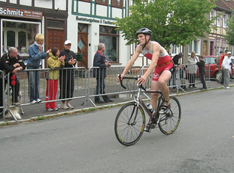 Beim Jedermann-Wettbewerb (750/29/5) gab nun auch die Vierte der Familie Börner ihren Triathloneinstand. Tina Börner, 21 Jahre, erreichte in 1:33:05 Stunden als Erste der AK 1 das Ziel. Mama Sabine wurde Zweite bei den Sen 1 in 1:23:40 Stunden. Immer besser in (Rad)Fahrt kommt Vater Jens-Uwe, der die Distanz in 1:17:36 Stunden und auf Rang acht in der Sen 2 bewältigte. Der Hecklinger Thomas Vetter, diesmal ausgestattet mit einem leichten Alurad, wurde in 1:19:04 Stunden Fünfter in der AK 4.