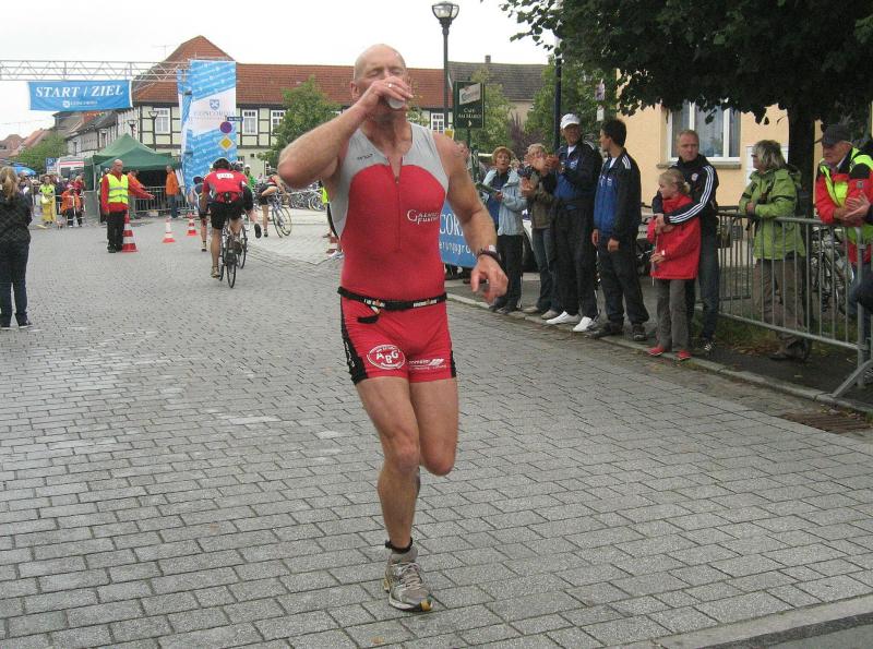 Geschmunzelt hat auch Thomas Vetter, der Mann, der seine Triathlon-Eingebung erst in Havelberg vor zwei Wochen hatte – noch mit dem Stahlrad am Start. Vetter besorgte sich übers Internet nun das leichtere Alurad und war begeistert, wie schön sich das Gerät über den Asphalt rollen lässt. Nicht zuletzt zahlt sich das Schwimmtraining immer mehr aus: Mit 17:40 Minuten kam er lediglich drei Minuten nach dem späteren Sieger aus dem Wasser. Beim Laufen muss er noch etwas zulegen, der kleine Einbruch kam auf den letzten fünf Kilometern, als ihn auch Jens-Uwe Börner kassierte. Ansonsten war Arendsee "on the top", was nichts anderes heißt als: absolute Spitze.