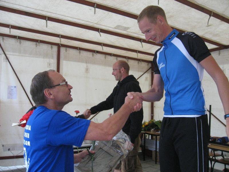 Nach dem Schwimmen war Blauwitz nicht mehr einzuholen, er war vielmehr nur noch am Überholen. Vergessen war der Fahrfehler von Kelbra Anfang Juli, beim 35-Jährigen lief es unglaublich rund. Waren die 30:57 Minuten nach den 1,5 Kilometern im See noch im Bereich des Normalen – er kann aber auch in diesem Element schneller – lieferte er über die 40 Kilometer auf dem Rad in 1:03:29 Stunden eine grandiose Leistung ab, die ihm völlig neue Möglichkeiten eröffnete. Mit 41:49 Minuten über die abschließenden zehn Kilometer auf der Laufstrecke gelang ihm diese klasse Endzeit, der 13. Gesamtplatz, der zwölfte Rang bei den Männern, der Zweite in der AK 4 – und Blauwitz kam aus dem Schwärmen nicht mehr heraus. Zu verdanken hatte er es nicht zuletzt seinen völlig abgenutzten und löchrigen Joggingschuhen. "Die kann ich gar nicht mehr wegwerfen", sagte Blauwitz lachend. Die anderen schüttelten ebenso lächelnd, aber vor allem respektvoll den Kopf.