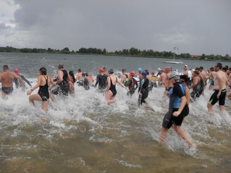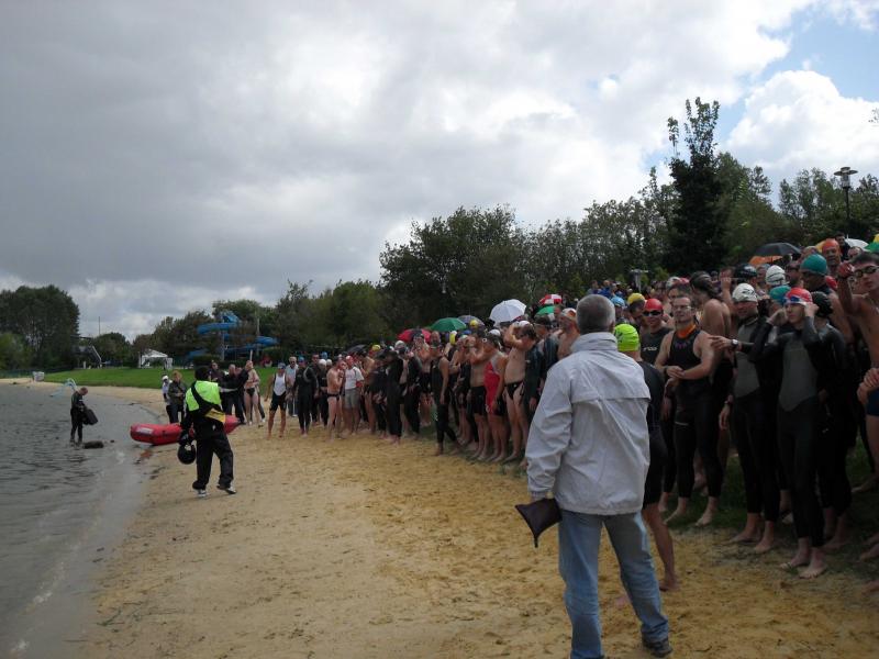 Besser lief es für das Team "Master of Desaster" aus Staßfurt mit Frank Jeewe, Patrick Sabrowski und Tobias Ortmann, das nach 1:17:48 Stunden das Ziel als 13. erreichte. In diesem hatten sich die Drei viel zu erzählen. Jeewe musste zunächst mit den "extremen Bedingungen" im Wasser klarkommen. Der Regen, der Wind und die Wellen waren stetiger Begleiter, wie auch die anderen 182 Teilnehmer, die sich in die Fluten stürzten. Der Startschuss für die Teilnehmer im Einzel und im Team erfolgte um 13 Uhr. Jeewe suchte sich einen Platz an der Seite. "Da hatte ich freie Bahn." Im Wasser nicht mehr, denn dort wurden Ellbogen und Beine eingesetzt. "Ich habe auch ordentlich Wasser geschluckt", erinnert er sich. Noch mehr an seinen Wechsel auf Saborowski: "Ich habe beim Wechsel meinen Transponder fallen lassen, so dass wir dadurch Zeit verloren haben." Die anschließenden Kilometer auf dem Rad meisterte Saborowski souverän. "Die sind für mich eigentlich zu wenig. Da werde ich gerade erst richtig warm." Dabei hatte er im Vorfeld mit dem rechten Klickpedal zu kämpfen. "Ich bin einfach nicht reingekommen. Da war Dreck drin und es war matschig." Der dritte Wechsel auf Ortmann, Handballer beim Mitteldeutschen Oberligisten HV Rot-Weiss Staßfurt, verlief ohne Probleme. Die Strecke war für Ortmann keine Unbekannte, er hatte diese erst vor 14 Tagen im Trainingslager absolviert, denn am Abschlusstag stand noch ein Triathlon auf dem Plan. "Da ich die Strecke kannte, wusste ich wo die Pfützen sind", unkte Ortmann. Dabei versuchte er trotzdem "ideal zu laufen". Die Zeit wurde bei 21:14 Minuten gestoppt.