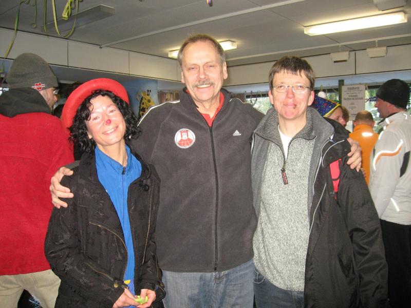 Den weitesten Weg nahmen wohl Sabine und Jens-Uwe Börner auf sich, um am letzten Tag des Jahres ihrem Hobby nachzugehen. In Hamburg-Volksdorf, wo sie bei Tochter Tina zu Besuch waren, umrundeten Sabine und Jens-Uwe auf einer 7,8 bzw. 10,4 km Strecke bei einem "etwas anderen Silvesterlauf" die Teichwiesen. Da die Läufer kostümiert sein sollten, kam der Spaß bei Aktiven und Zuschauern nicht zu kurz. Sabine kam nach 47 Minuten ins Ziel, während Jens-Uwe für eine Runde mehr 50 Minuten brauchte. Nach Auszeichnung der besten Kostüme standen für alle 800 Teilnehmer ausreichend Glühwein und Berliner bereit. Groß war die Freude der Bode-Runners, dass sie dort auch Bekannte vom Nordseelauf wiedertrafen.