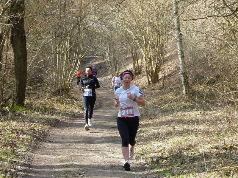 Felix Göres als Neumitglied im cash´n fun Junior Team der Salzlandsparkasse, hatte es mächtig eilig wieder in das Ziel zu kommen. Seine 5,7 Kilometerstrecke bog bereits wieder in Richtung Sportforum ab und auch die zehn und 14,3 Kilometerläufer gingen bald getrennte Wege. Nach einem rasanten Gefälle mit Wurzelwerk, Felsen, Treppen und Holzstegen, erholten sich die Läufer auf einer kurzen geraden Passage. Zeit, um ein paar tiefe Züge Waldluft einzuatmen, denn der nächste Hügel ließ nicht lange auf sich warteten. Ohne Probleme meisterten Johannes Höber und Martin Wille den Zehn-Kilometer-Crosslauf. Ihre schnellen Zeiten wurden, ebenso wie bei Felix über die 5,7 Kilometer, mit einer Silbermedaille gekrönt. Maximilian Gäde, das erste Mal über eine Zehn-Kilometer-Distanz, freute sich über einen dritten Platz in seiner Altersklasse. Bei den Damen konnte Ina Schöler von der ZLG Atzendorf ihren zweiten Platz aus dem Vorjahr in eine Goldmedaille verwandeln. Und auch Isa Höber von den Bode-Runners war mit einem zweiten Platz in der stark besetzten Frauenklasse mehr als zufrieden. Alle Teilnehmer meisterten das anspruchsvolle Streckenprofil und kamen gut gelaunt und verletzungsfrei in das Ziel. Mutig bewältigte Sylvia Köhn ihren ersten Berglauf, Annegret Wille war wieder mit am Start und auch Neumitglied Jürgen Eisfeld schien sich sichtlich wohl zu fühlen. Bereits zur Tradition geworden, gönnte sich die Mannschaft im Restaurant „Zum Ziegenkopf“ einen dicken Hefekloß als Belohnung. Genug Nahrung für den nächsten Wertungslauf im Gaensefurther Läufercup!