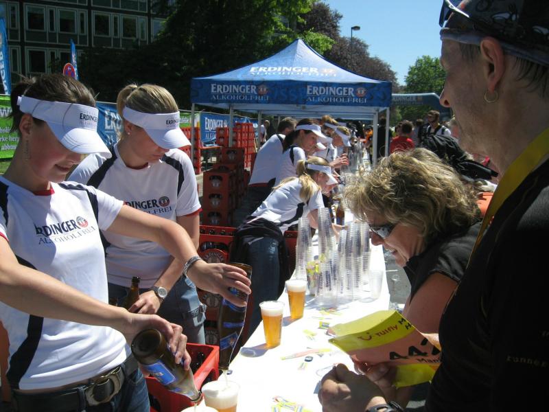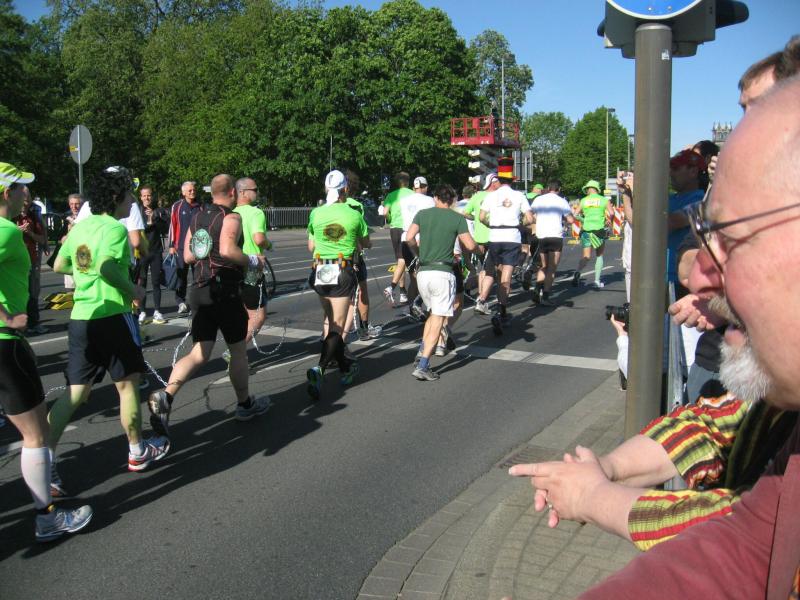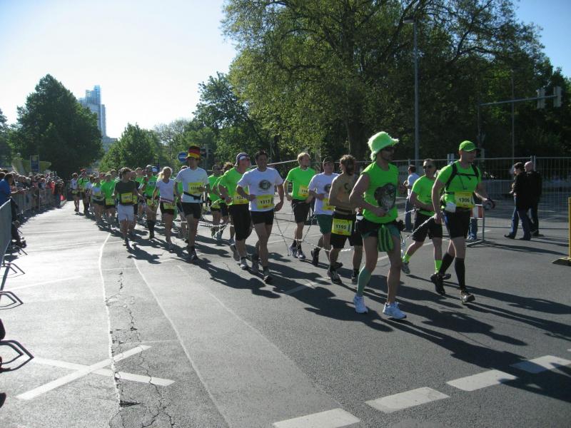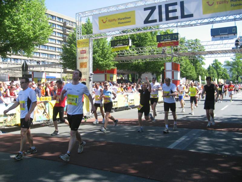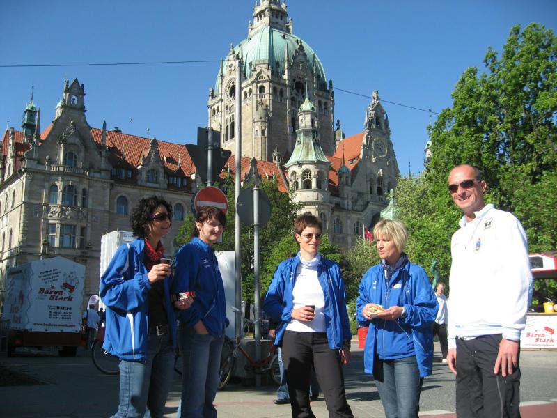 Eine ganz andere Traumzeit hatte Lutz Klauß verinnerlicht. Ein Marathon unter vier Stunden sollte es werden. Über Kopfsteinpflaster ging es durch die schöne Prager Altstadt, aber selbst das hatte er trainiert. Kam in der Vergangenheit ab Kilometer 32 immer „der Mann mit dem Hammer“, war Tschechien wohl weit genug entfernt. Es kam bald Kilometer 35 und weiter, der Mann kam einfach nicht. Nach traumhaften 3:55:48 Stunden lief Klauß über die Ziellinie. Anruf in Deutschland: „Nie wieder Marathon - ich hab´s geschafft!“ Bei Meier lief bis Kilometer 35 alles nach Plan. Dann ein Schlenker und ein schleichender Schmerz im Rücken, welcher immer heftiger wurde. Mit ruhigem 130er Puls humpelt Meier in Hannover über die Ziellinie. Am Dienstag lief er wieder… Katrin Winkler-Hindricks, Petra Becker und Jens-Uwe und Sabine Börner starteten unter der Devise: „Halb reicht auch mal!“ Aufgeregt trennte man sich vor dem Start der 21 Kilometer, um sich nicht gegenseitig verrückt zu machen. Zahlreiche Samba-Bands begleiteten die Damen bei ihrer Sightseeing-Tour durch die City. Fast zeitgleiche Ergebnisse wurden am Ende verbucht. „Da hätten wir auch zusammen laufen können!“ Denn ganz allein lief auch Sylvia Köhn. Das Ziel, die zehn Kilometer unter einer Stunde zu absolvieren hat sie trotz Mittagshitze und böigem Wind souverän gemeistert. Das ist noch weiter ausbaufähig! Einem neuen Weltrekord durften die Bode-Runners der Gaensefurther Sportbewegung dann auch noch erleben. 51 Teilnehmer waren als Kettenläufer aneinander gekettet und bewältigten unter diesen Umständen die Marathondistanz.