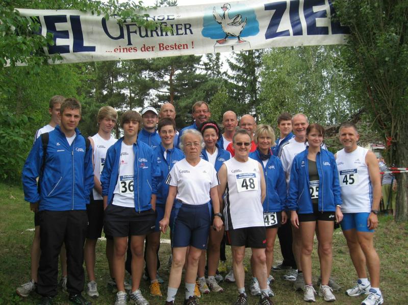 Der gleichzeitig gestartete Männerlauf über zehn Kilometer wartete mit einigen Anstiegen und einer Seeumrundung auf. Enge Wege und dichtes Gestrüpp mit manch einem Wachklatscher für den folgenden Hintermann, forderten volle Konzentration. Schnellster und sicher glücklichster Bode-Runner war an diesem Tag Ingo Bieganski. Nach einer längeren Pause wegen einer Knie-OP glich seine Zielzeit einem Befreiungsschlag. Mann für Mann sausten nun alle weiteren Bode-Runners über die Ziellinie. „Und noch ein Gaensefurther Läufer!“ feierte der Sprecher den Hauptsponsor dieser Laufveranstaltung.