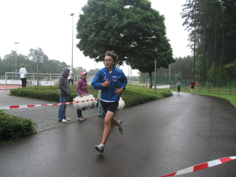 Der Rolandlauf in Haldensleben wurde das erste Mal als Wertungslauf im Gaensefurther Läufercup ausgetragen. Mit der schönen Anlage am Waldstadion bot der Veranstalter den Sportlern beste Bedingungen. Der Regen, welcher bereits am Vortag die Waldwege ordentlich aufgeweicht hatte, war eine nicht zu beeinflussende Größe. Und so nieselte es auch wieder am Start über die 2,3 Kilometer. Felix Göres vom cash`n fun Junior Team der Salzlandsparkasse verhalf die erfrischende Brise zum Sieg in seiner Altersklasse. Nur knapp verfehlte er den Gesamtsieg über diese Distanz. Gerade richtig warmgelaufen startete er nur ein paar Minuten später, außer Konkurrenz, auch im Hauptlauf über 13,2 Kilometer. Seine etwas älteren Sportfreunde mussten, um in die Wertung zu kommen, den langen Kanten in Angriff nehmen. Entsprechend ruhig wollte die Jugend diesen Lauf gestalten. Die Taktik erwies sich am Ende als richtig, hielten alle vier tapfer durch und belegten als jüngste Teilnehmer dieser Distanz erste und zweite Plätze.