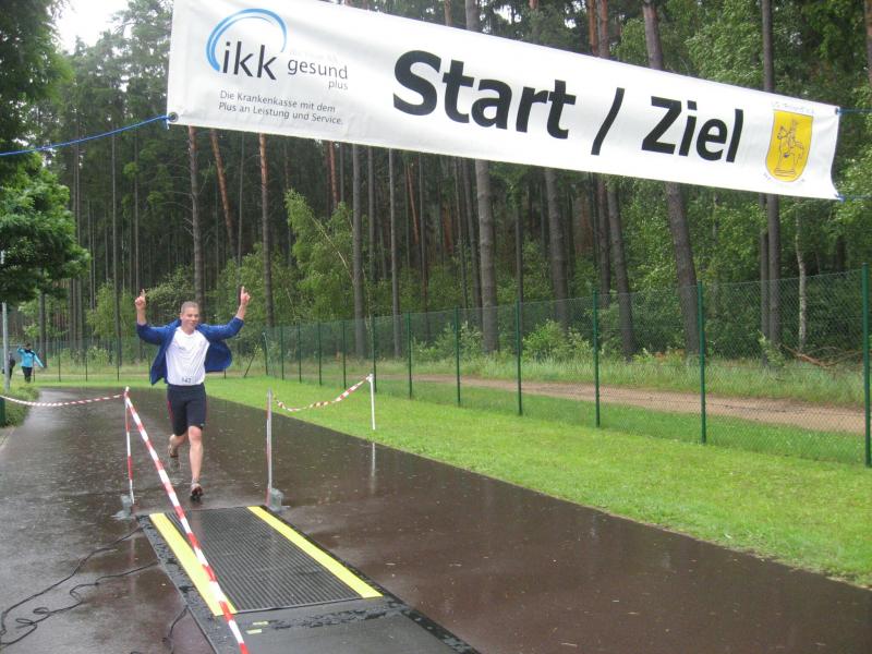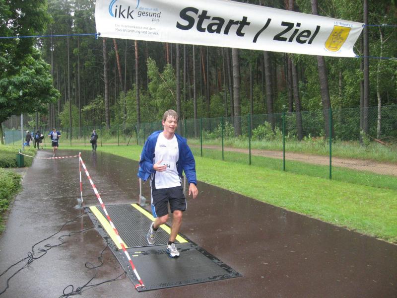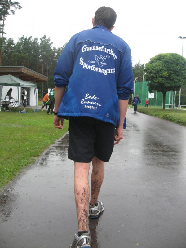 Im Feld der 7,2 Kilometerläufer trafen die Bode-Runners auf viele Eickendorfer Starter. Es reichte aber meist nur zu einem freundlichen „Hallo“, denn Matsch, Pfützen, Tannenzapfen und Wurzelwerk erforderten die ganze Aufmerksamkeit der Läufer. Bevor das Ziel erreicht wurde, goss es wieder aus allen Wolken. Davon bekam die Langdistanz dann noch ordentlich was ab. Kein Hindernis für Lutz Klauß, der sich von Wettkampf zu Wettkampf an Jens-Uwe Börner herantastet. „JUB, bald hab ich dich!“ neckte er im Ziel den Gejagten.