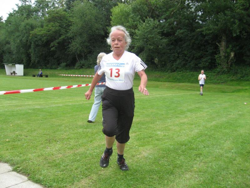 „Das ist genau meine Strecke, ich mag es, wenn es etwas kürzer ist“, sagte Schwenke. In 27:45 Minuten erreichte sie als Gesamtdritte das Ziel. „Ich weiß nicht, wie sie das macht, aber sie ist immer zwei, drei Minuten schneller als ich“, schmunzelte Sabine Börner (W 40) von der Gaensefurther Sportbewegung. Sie war allerdings nicht ganz zufrieden mit ihrem Auftritt beim dritten Wertungslauf im Solvay-Cup. Schließlich wäre sie gern an Karin Taraba vom RTC Bernburger Bären drangeblieben, verlor so aber wertvolle Punkte. „Ich musste irgendwann abreißen lassen.“ Dafür hielt sie Ines Schimpf vom TC Krumbholz Bernburg sowohl beim Lauf als auch in der Gesamtwertung des Solvay- Cups auf Distanz. Das wird sie ebenso freudig gestimmt haben wie das Abschneiden von Sylvia Köhn (W 20). Beim Zieleinlauf wurde sie von Börner noch angefeuert und kam über die 5,7 Kilometer nach 33:16 Minuten als Erste an, sichtlich zur Freude ihrer Teamkollegin.