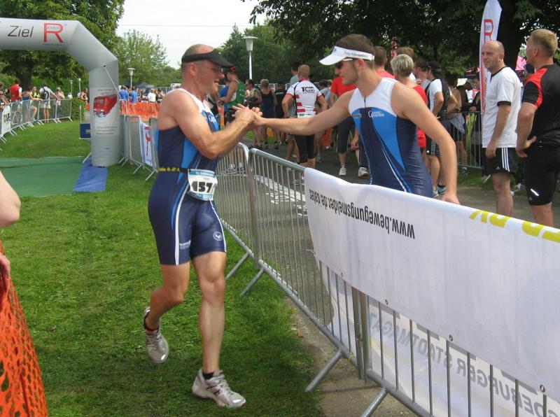 Die "Triathlonversteher" blieben mit ihrem addierten Lebensalter unter 120 Jahre. Janko Schlenker, Olaf Moch und Florian Börner schafften ebenfalls Platz 15 ihrer AK und beendeten den Wettkampf nach 3:33,44 Stunden.