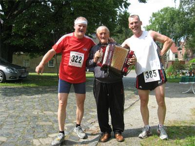 Traditionell fuhren am Pfingstmontag 14 Bode-Runners des SV Concordia Staßfurt zum 9. Gerstewitzer Mühlentag-Lauf. Bei schwül-warmen Temperaturen und bedecktem Himmel starteten die Hauptläufe bei den Damen über sechs und bei den Herren über zehn Kilometer. Angefeuert von den Nellschützer Einwohnern, führte der Weg in Richtung Gerstewitzer Mühle. Bevor für die Männer der dort aufgebaute Getränkestand kam, mussten diese noch einen kleinen Abstecher um den idyllisch gelegenen Auensee laufen. Viele wären wohl lieber durch den See geschwommen, aber dass hatte der Veranstalter nicht vorgesehen. Endlich an der Mühle angekommen, verteilten fleißige Helfer Getränke und spornten die Läufer für den Rückweg an. Vorbei an der Halunkenburg ging es wieder in Richtung Nellschütz. Das Ortsschild wurde erreicht und auch der 80-jährige Akkordeonspieler, der wie im Vorjahr wieder fester Bestandteil dieses Volkslaufes war. Auf der sechs Kilometerstrecke konnte Florian Börner vom cash`n fun Junior Team finishen. Isa und Johannes Höber belegten in ihren Altersklassen einen familiären zweiten Platz. Wenige Minuten vergingen bis Sabine Börner und Jana Bieganski zufrieden abklatschten. Platz zwei und drei für die Damen, die gerne immer noch ein Stückchen schneller wären. Beim zehn Kilometerlauf ein gewohntes Bild auf dem Podest: Ingo Bieganski konnte sich bei diesem siebenten Wertungslauf in der Gaensefurther Landescupserie wieder einen dritten Platz sichern. Leider kann es nicht für jeden Teilnehmer einen Podestplatz geben. Daher gibt es in Nellschütz einen Sonderpreis für den Verein, welcher mit den meisten Teilnehmern startet. Das Los musste zwischen Medizin Magdeburg und den Concorden entscheiden: Fortuna war den Bode-Runners hold, ein Fass mit 30 Liter Gerstensaft aus Gerstewitz reiste mit nach Staßfurt!